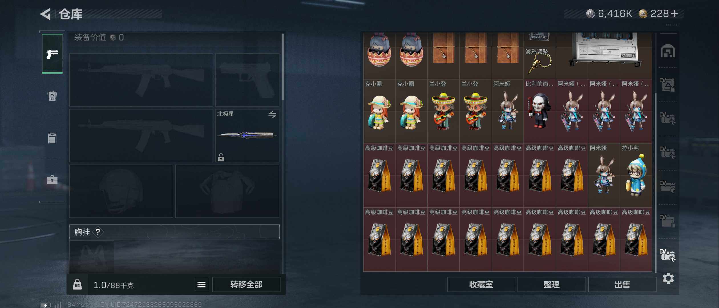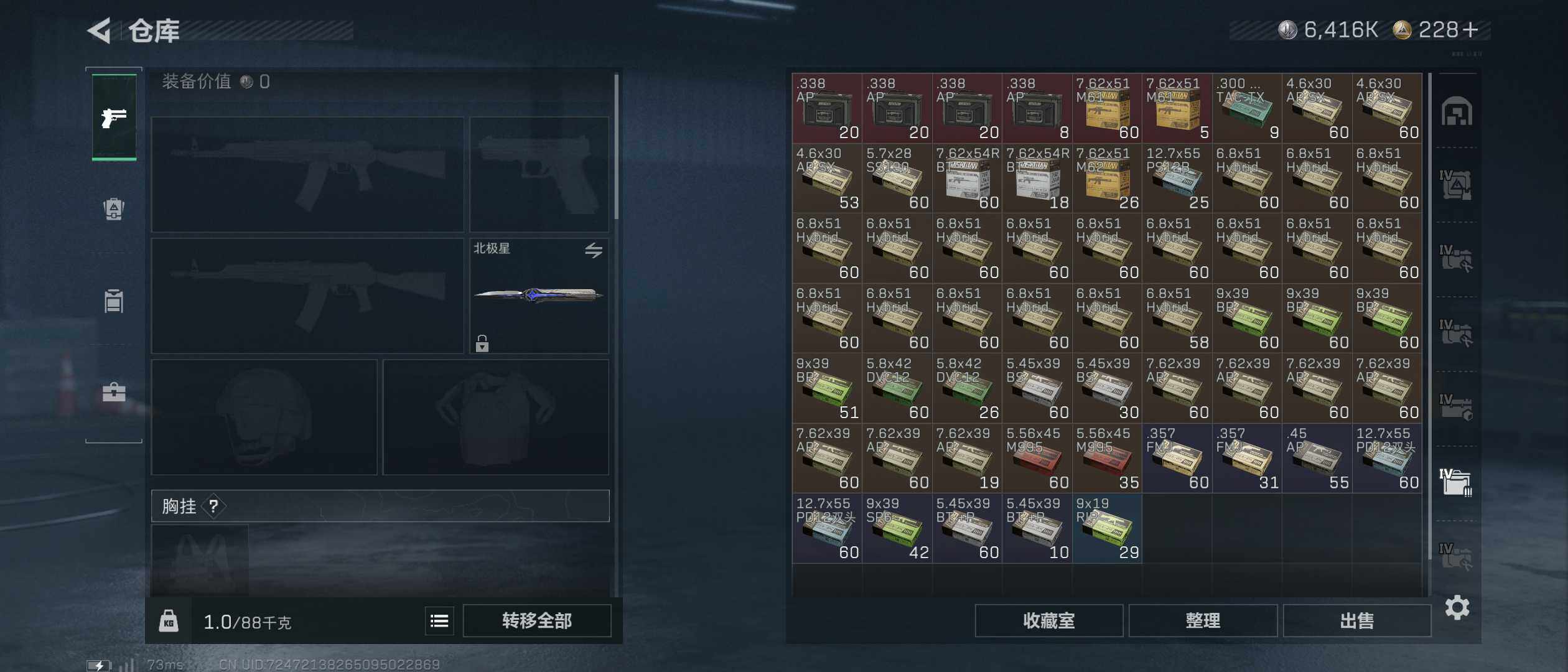 352m总资产-6416k哈伏币-60烽火等级-黑鹰-10战场等级-列兵【干