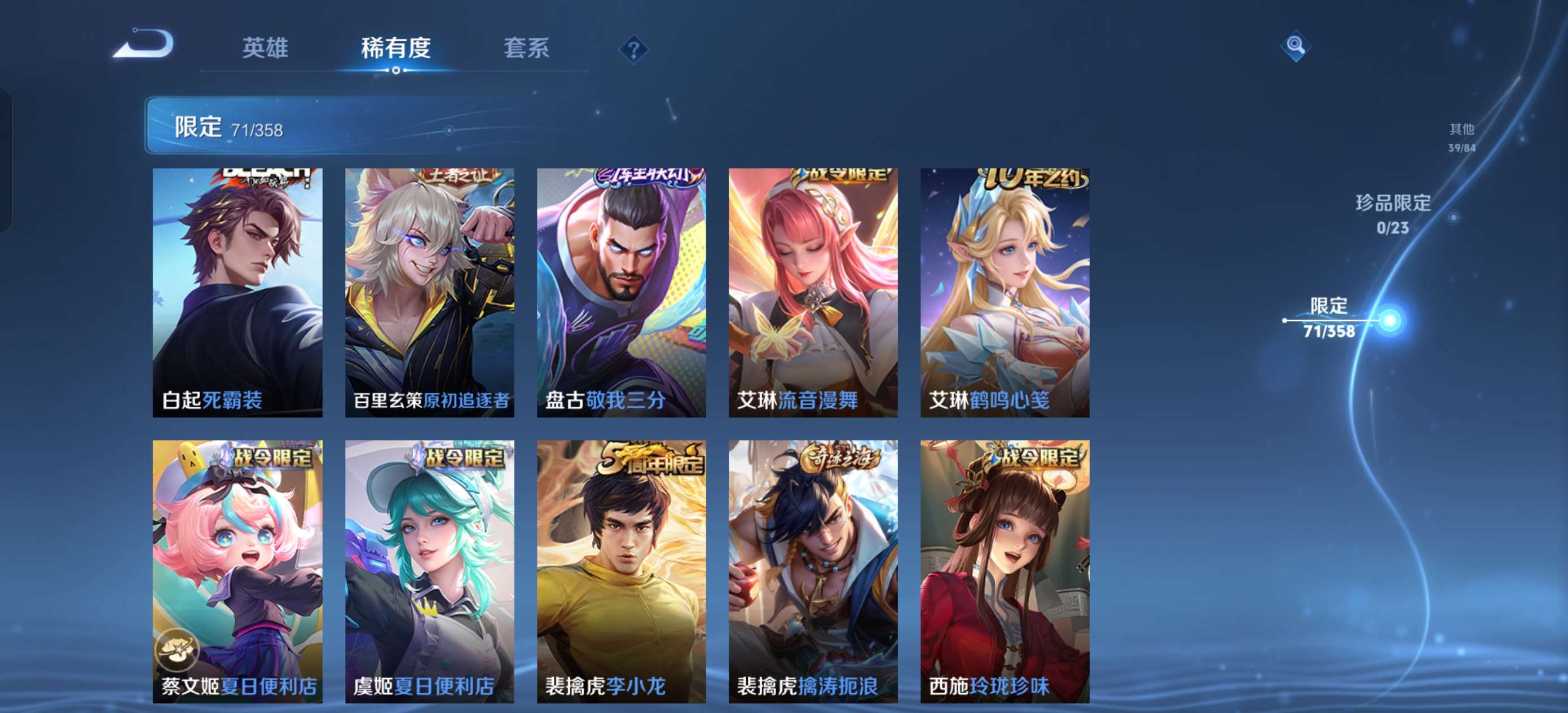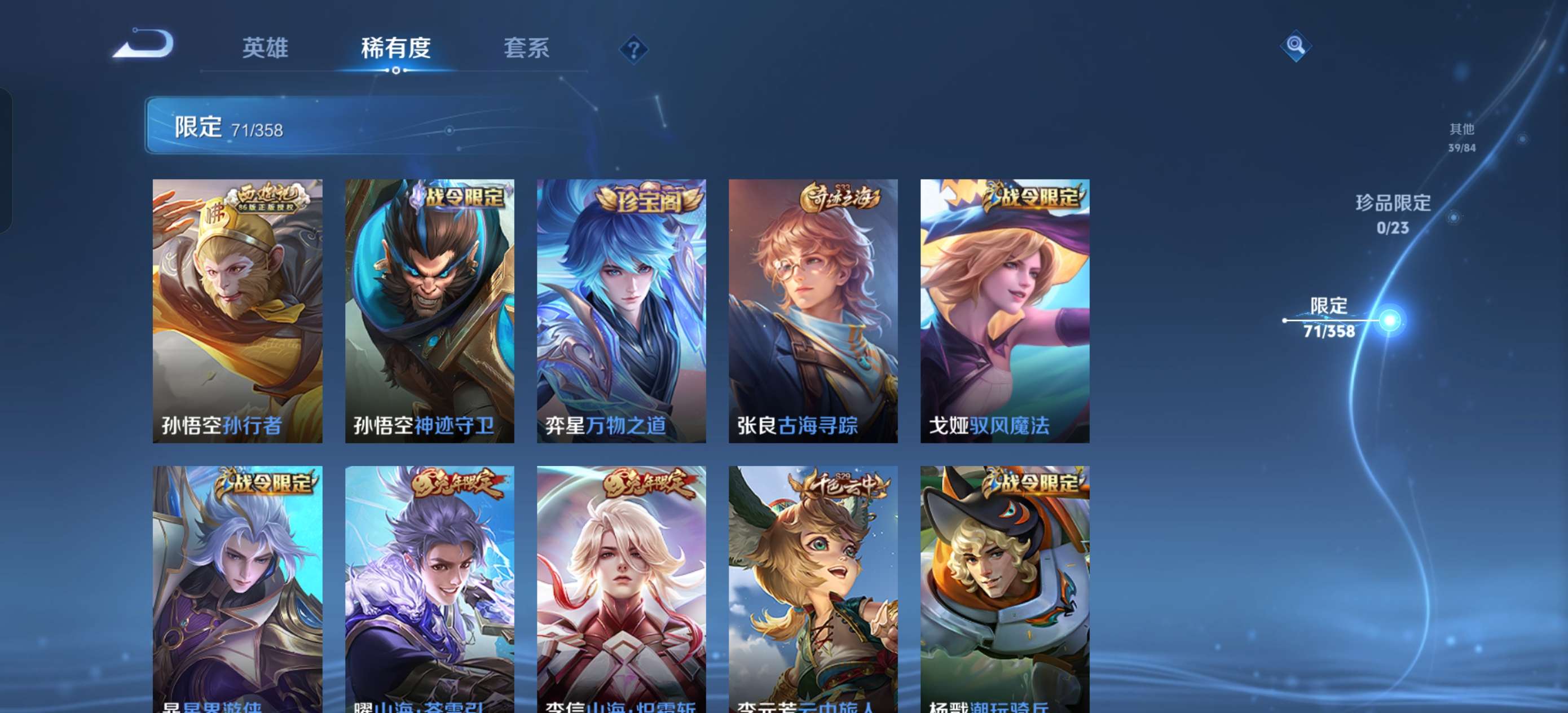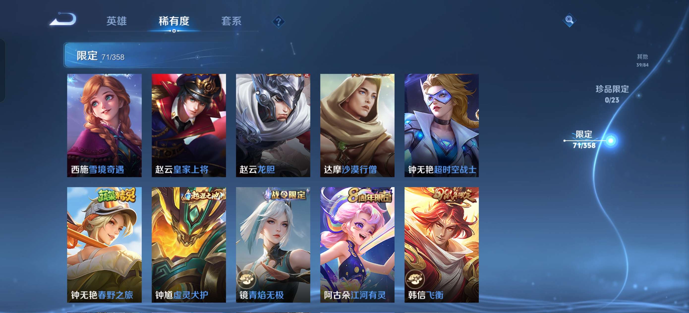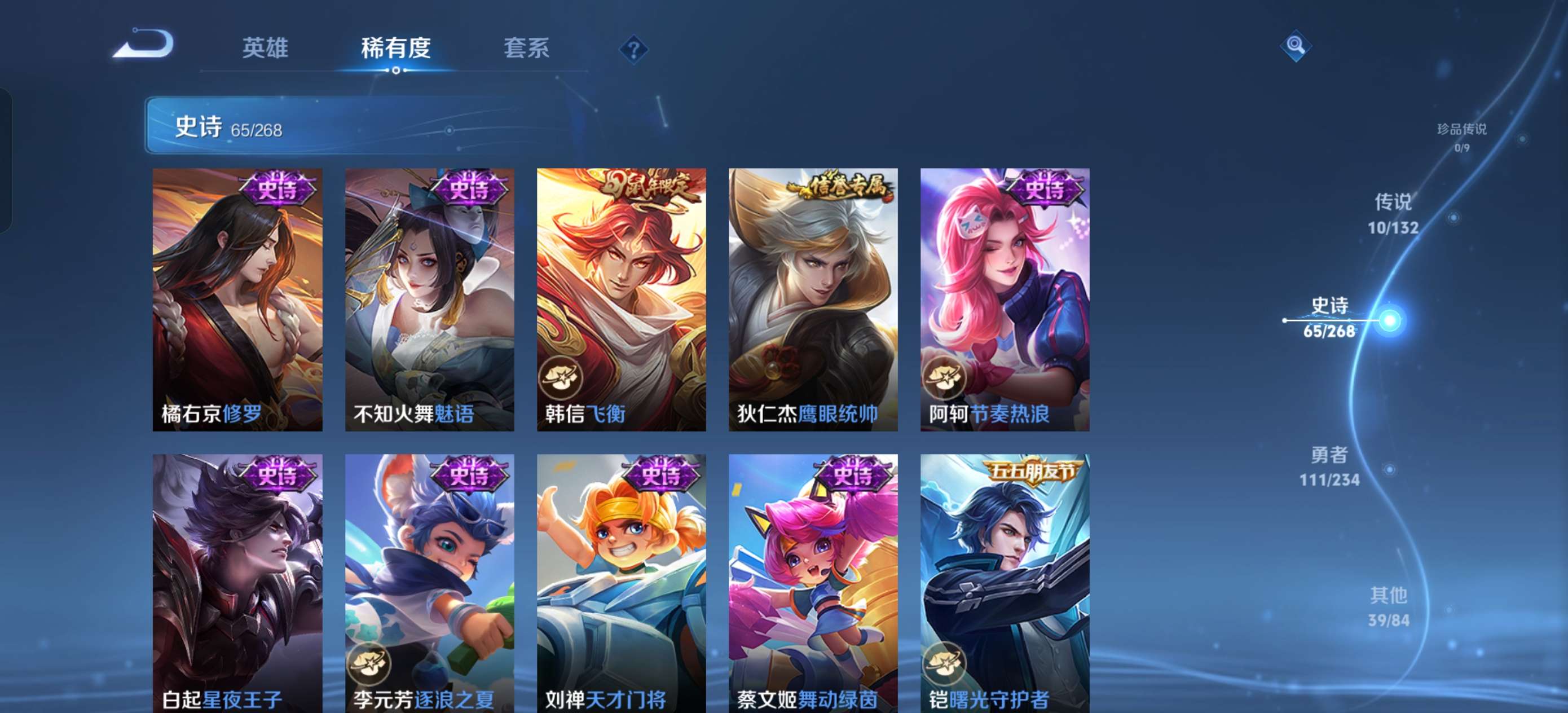 V7 皮肤226 英雄127 至尊星耀 荣耀典藏1 传说9 其他皮肤221