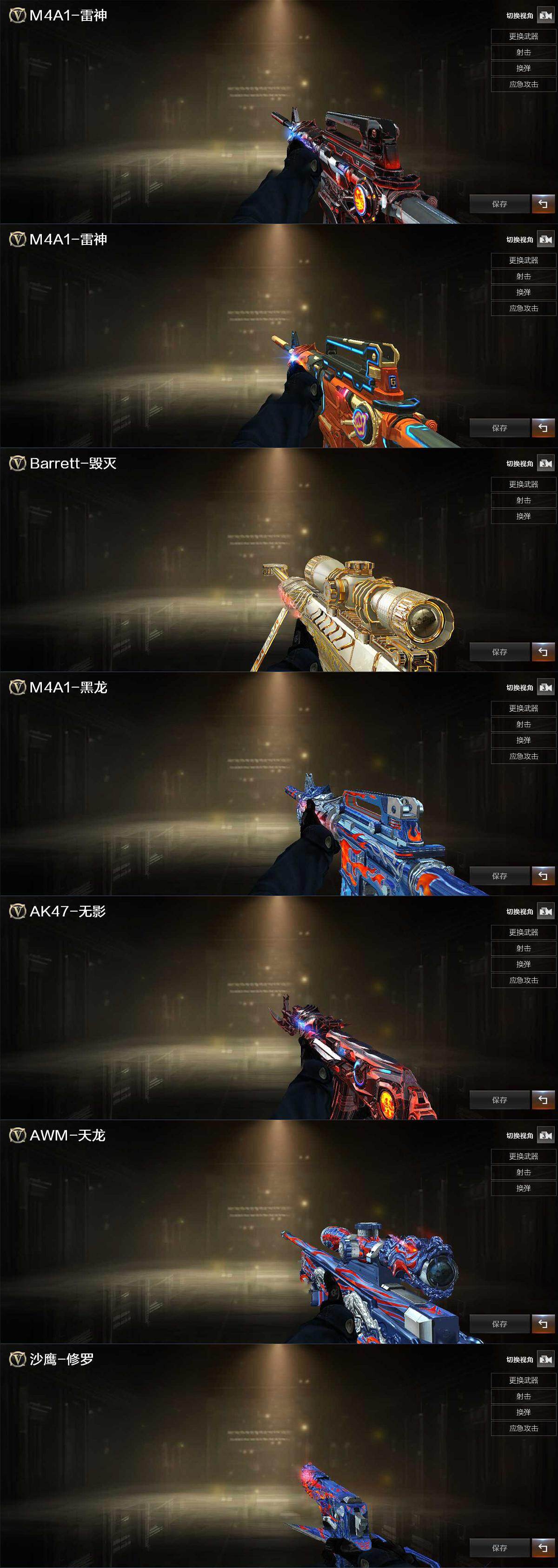 【音效卡】:AK47-火麒麟音效卡,M4A1-雷神音效卡,Barrett-毁灭音效卡