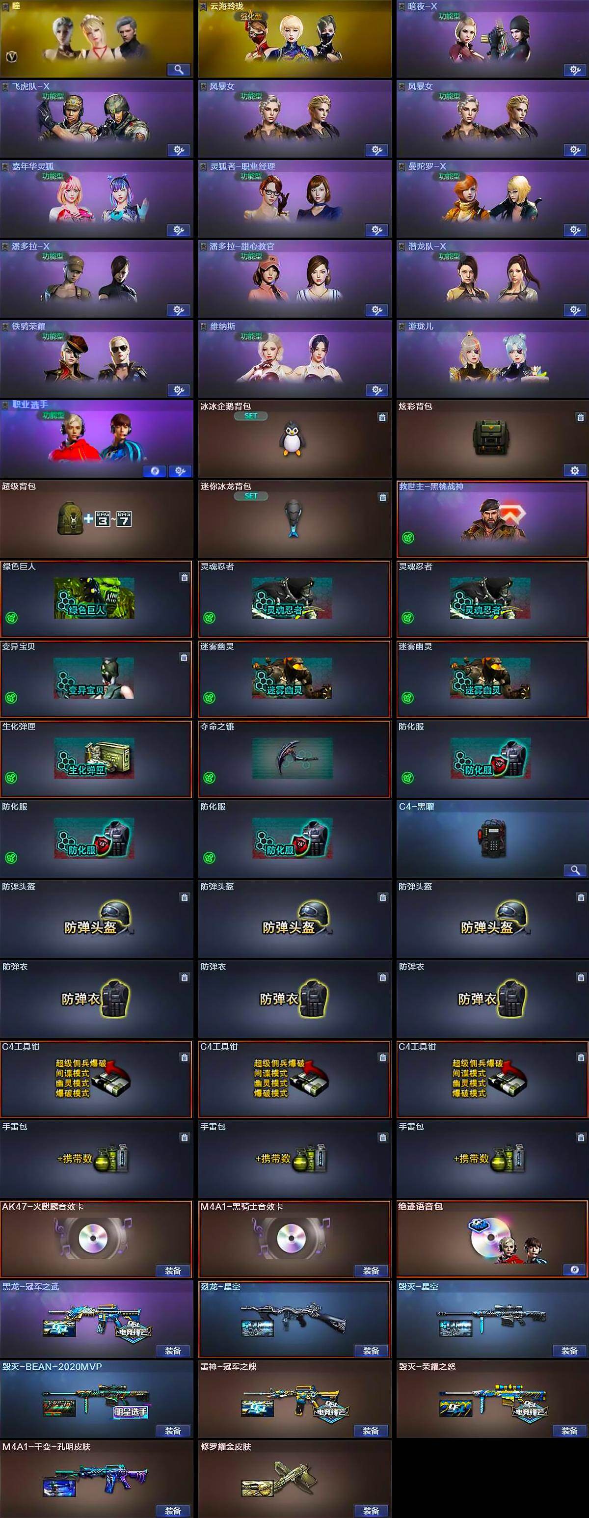 【皮肤】:烈龙-星空,雷神-冠军之魄,毁灭-荣耀之怒,毁灭-星空,毁灭-BEAN-2020MVP,毁灭-英雄计划 皮肤,M4A1-千变-孔明皮肤,黑龙-冠军之武