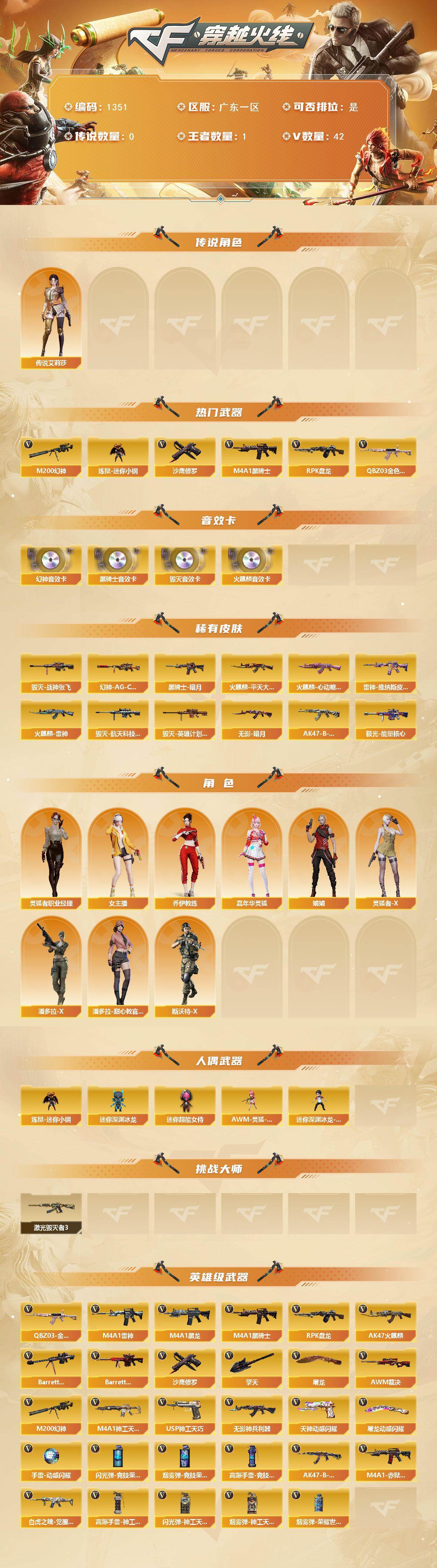 广东一区-42V-1王者-0炫金【传说角色】:传说艾莉莎【热门武器】:QB