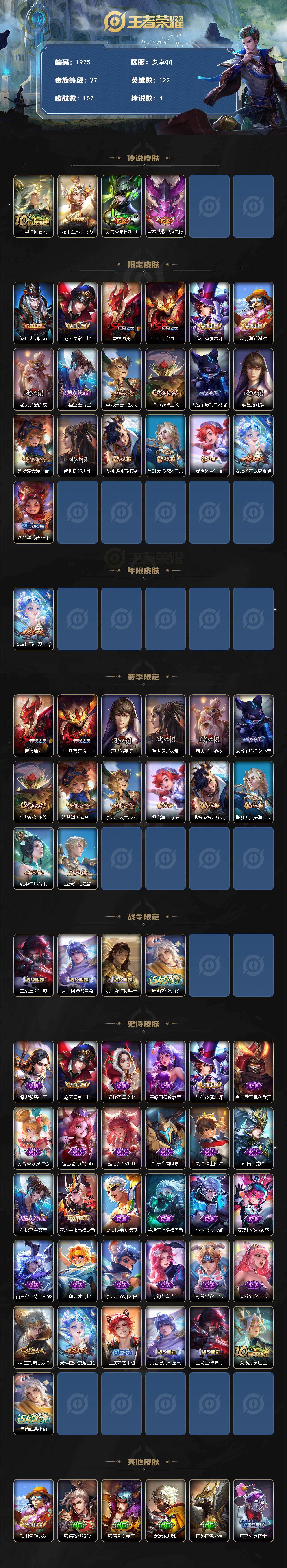 安卓Q-V7-尊贵铂金IV段位-122英雄-102皮肤-4传说-30史诗
