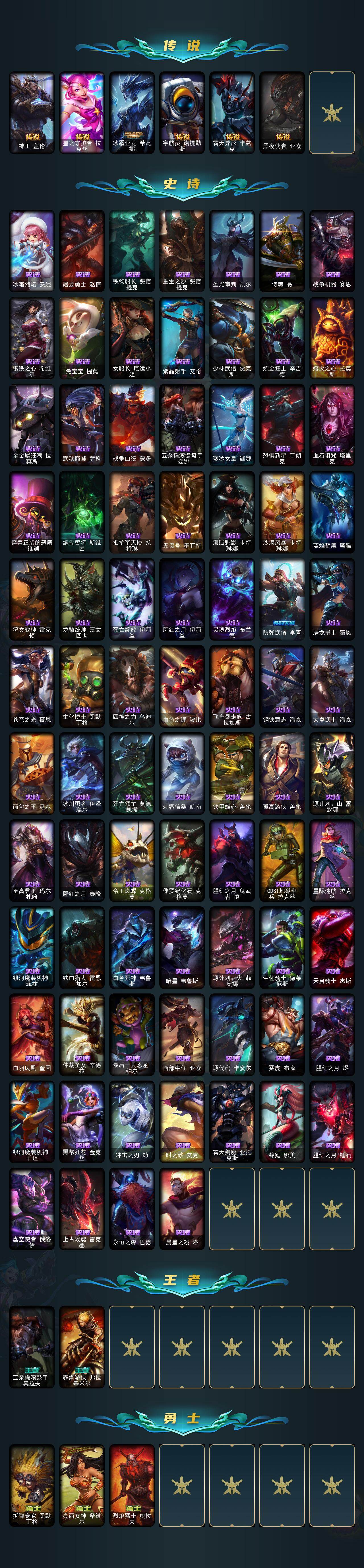 白银段位-172英雄-310皮肤-199炫彩-0终极-8神话-30限定-27传说-81史诗