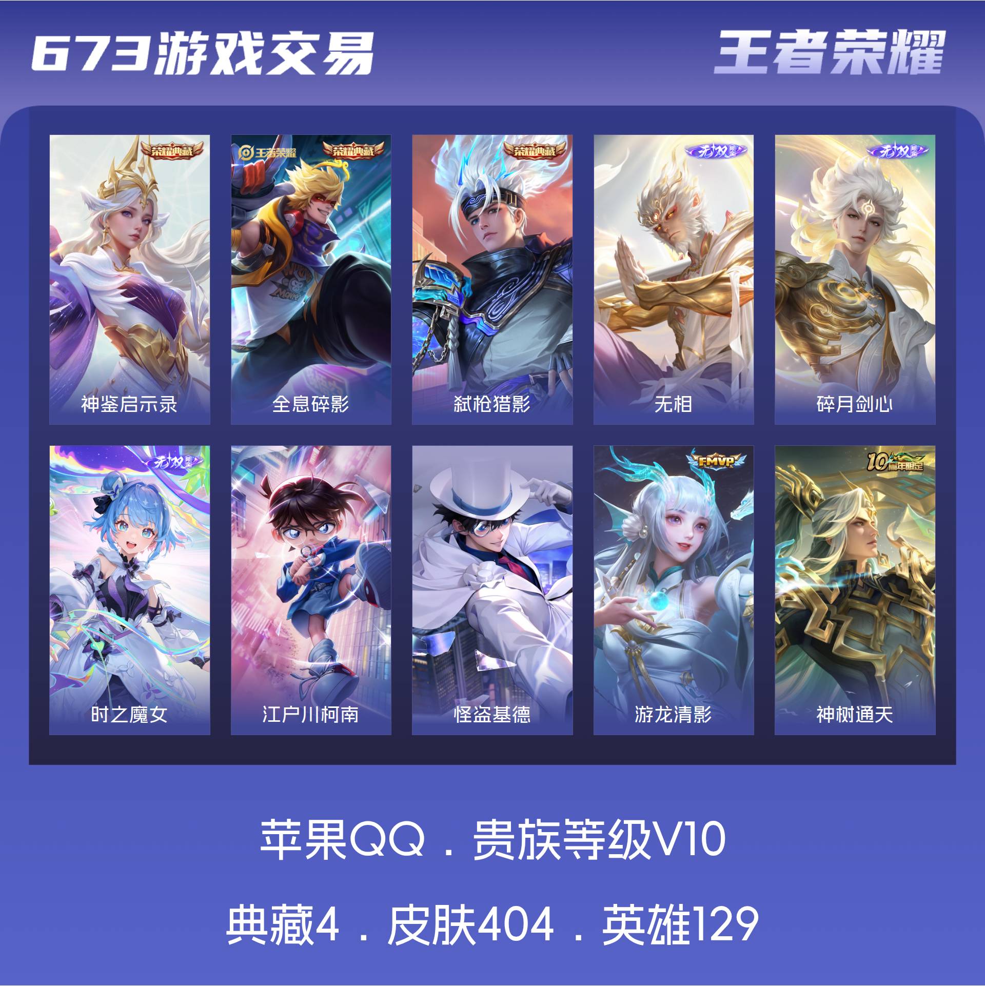 苹果QQ/永恒钻石/404皮肤/129英雄/3典藏/0珍品无双/3无双/2珍品传说/37传说/114