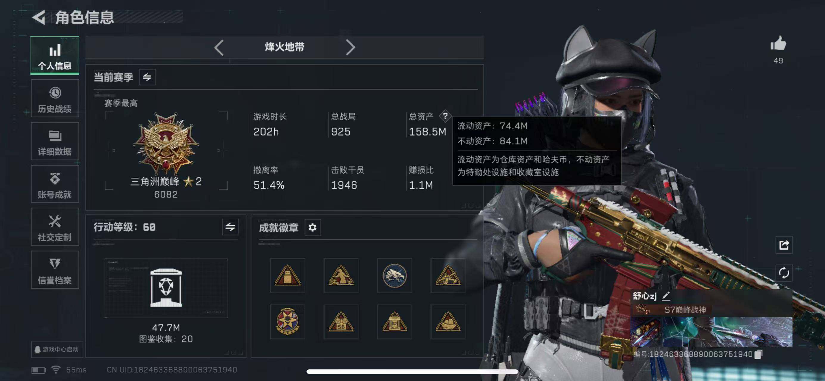 158m总资产-15911k哈伏币-60烽火等级-三角洲巅峰