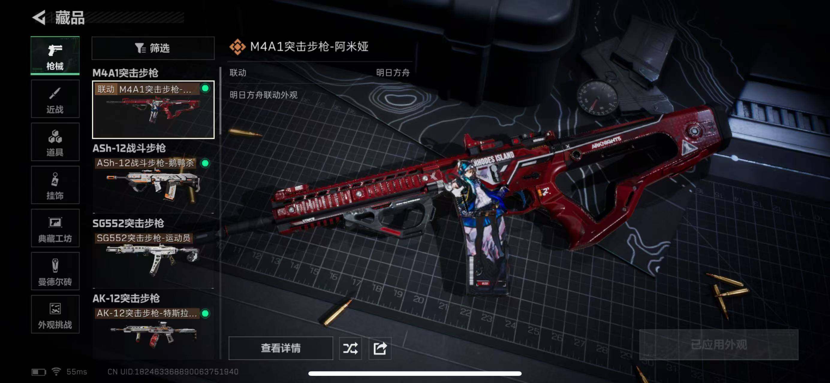 【传说外观】:M4A1突击步枪-阿米娅,ASh-12战斗步枪-鹅鸭杀,SG552突击步枪-运动员,AK-12突击步枪-特斯拉线圈,SCAR-H战斗步枪-启航,G3战斗步枪-骑士,CAR-15突击步枪-阿米娅,腾龙突击步枪-捞点薯条,K437突击步枪-北极星,K