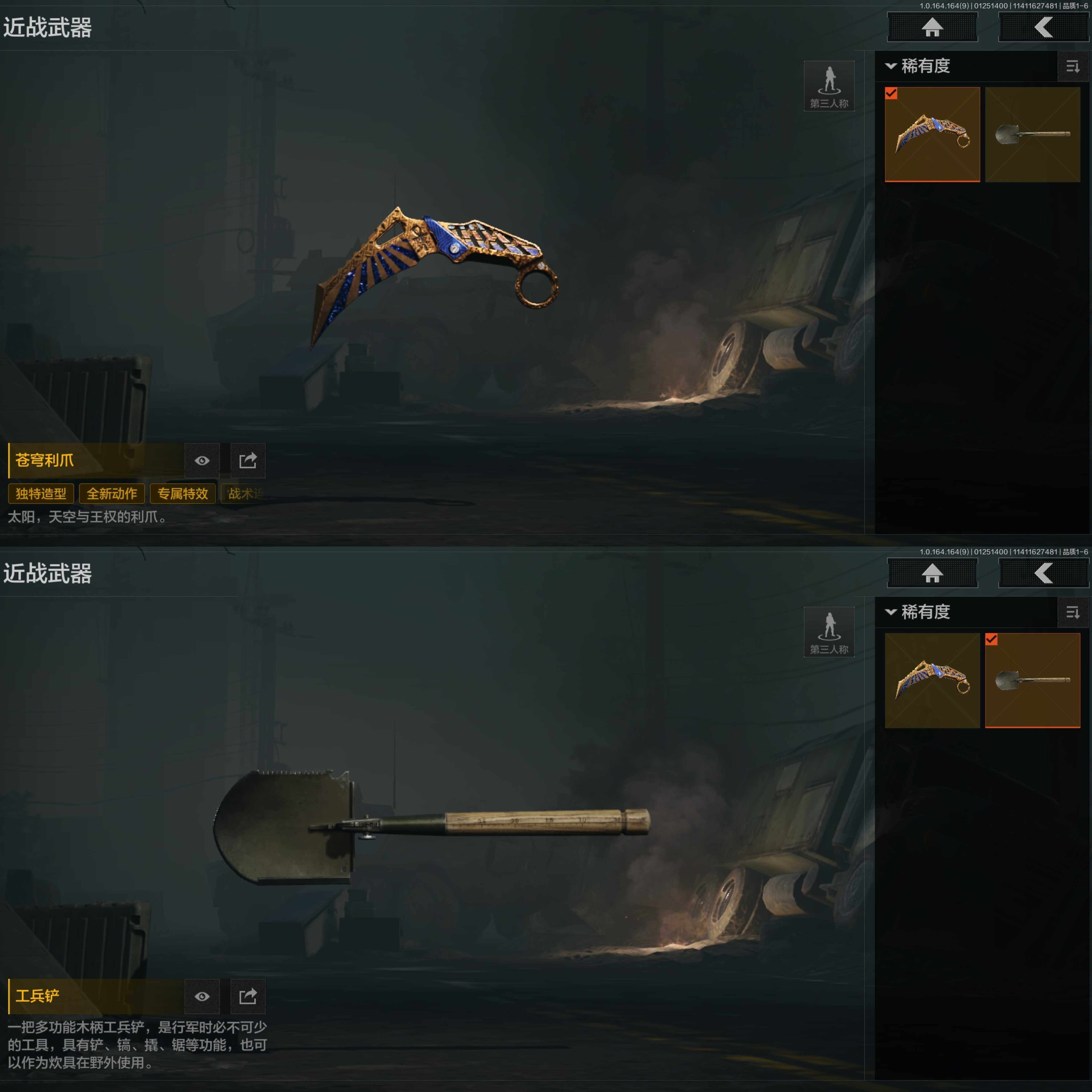 aa16,2把刀苍穹利爪,2黄枪,6紫外观,和平先锋作战套装财团之手作战套装,狠活就位挂饰