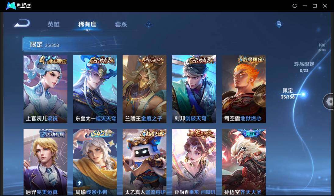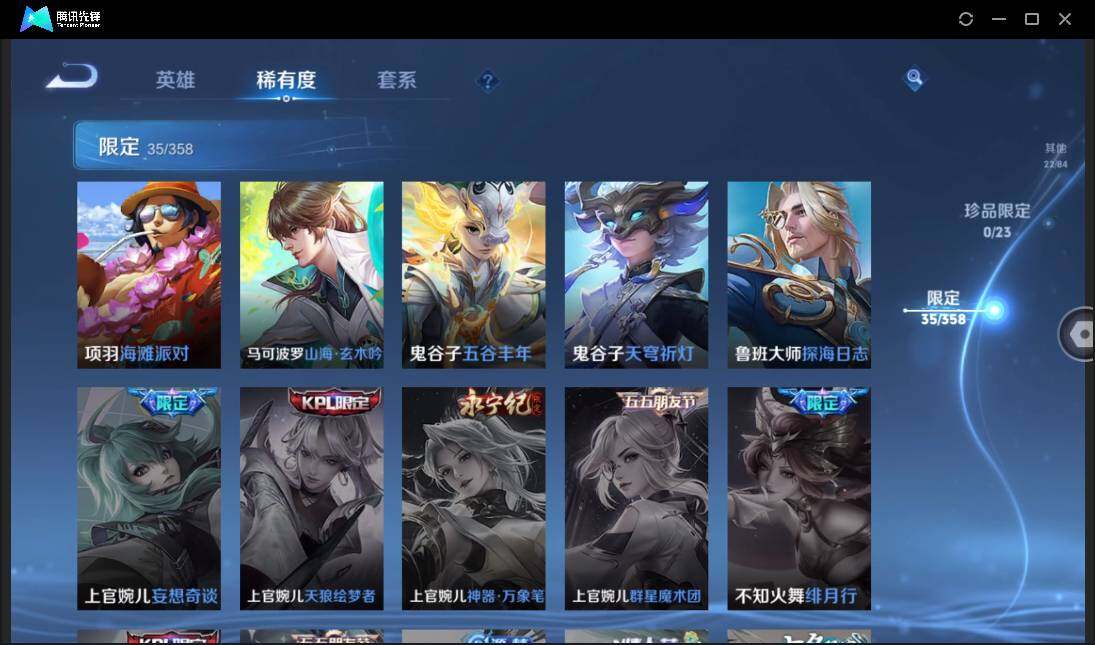 安卓QQ-有二次-贵7-120英雄-101皮肤-9传说-1星元-35限定-5按键-灵宝