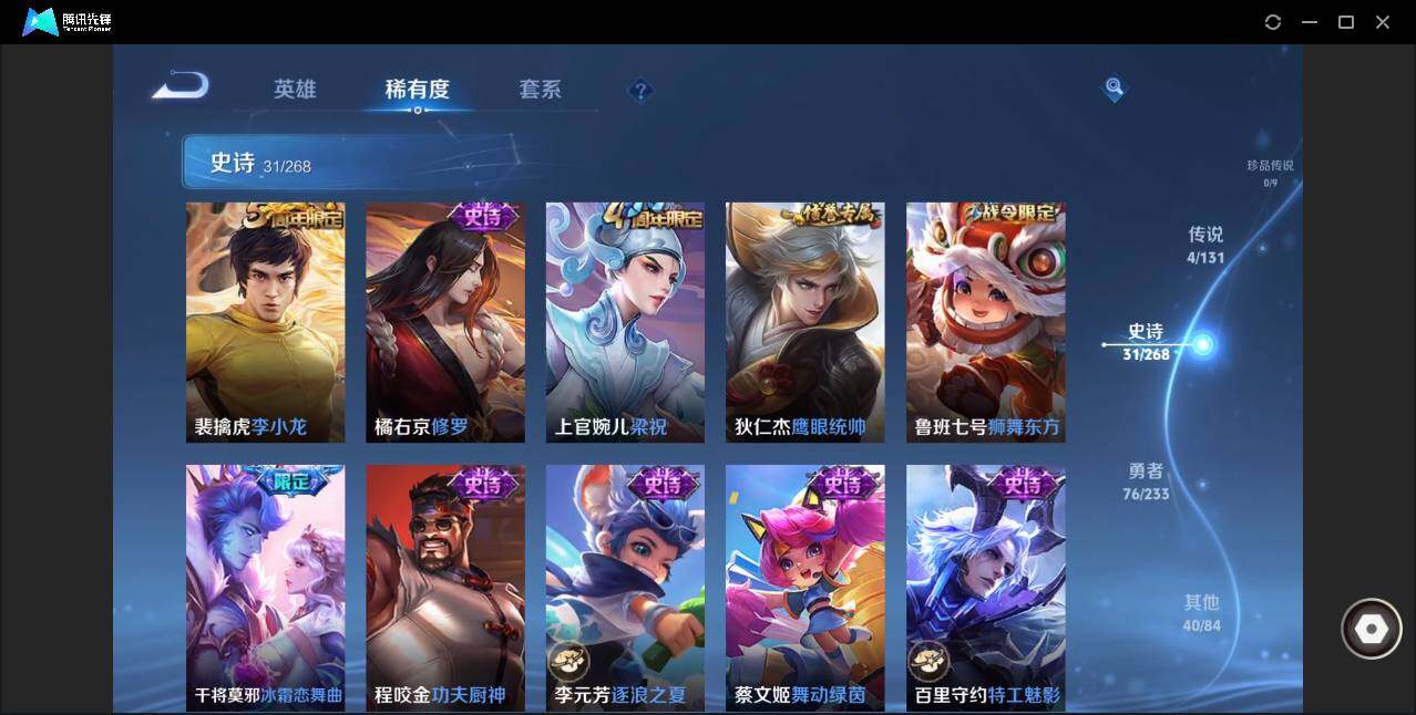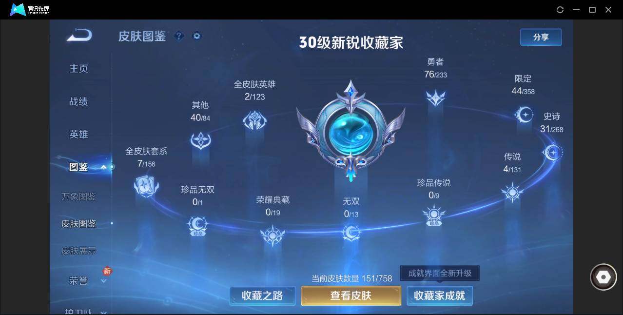 安卓Q区-无二次-贵7-127英雄-151皮肤-4传说-31史诗-44限定-1星元