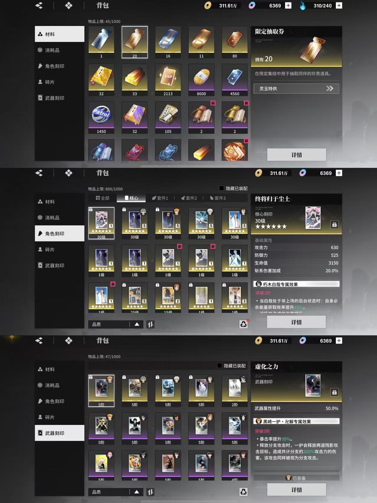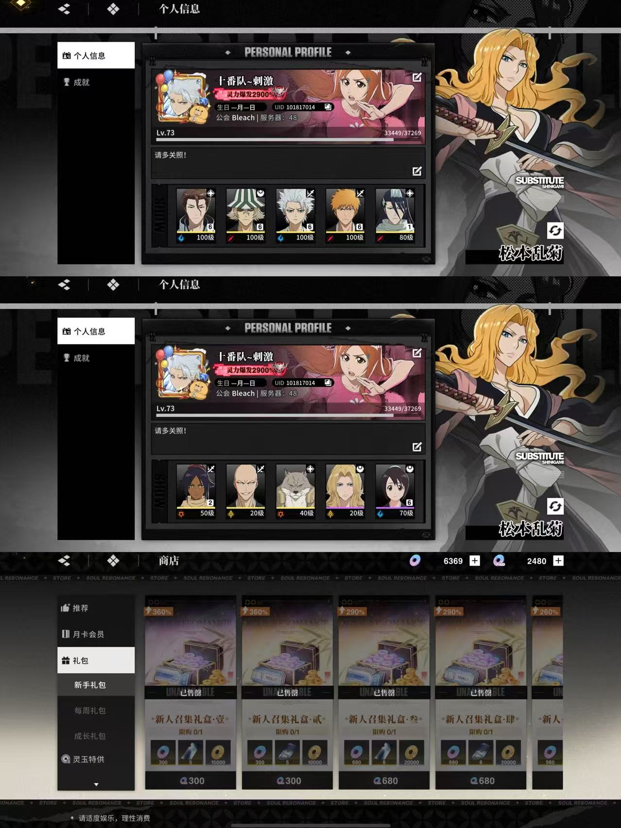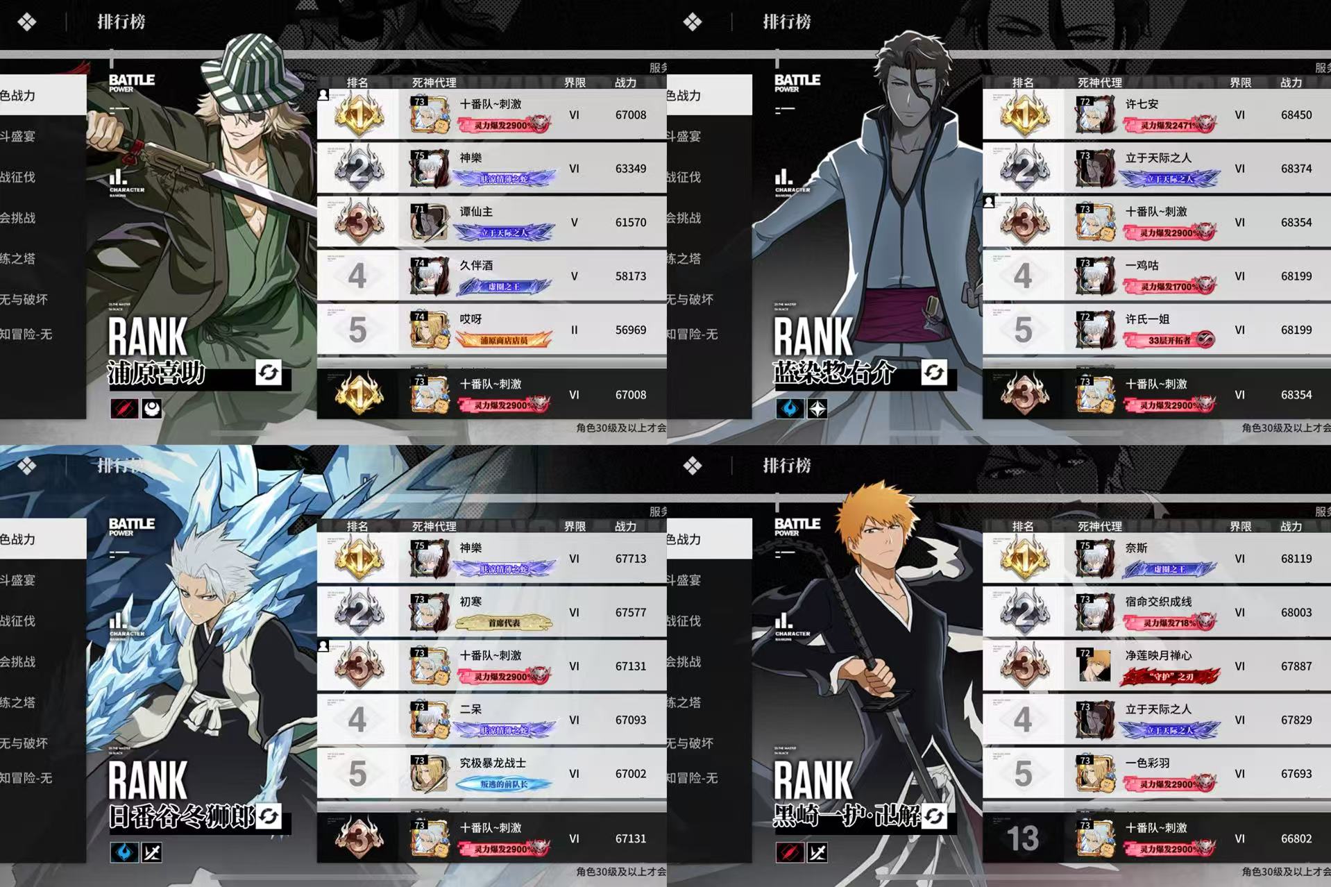 655店长655蓝染655小白655一护121白哉2命夜一市丸银武器已出 池子垫4抽20抽角色