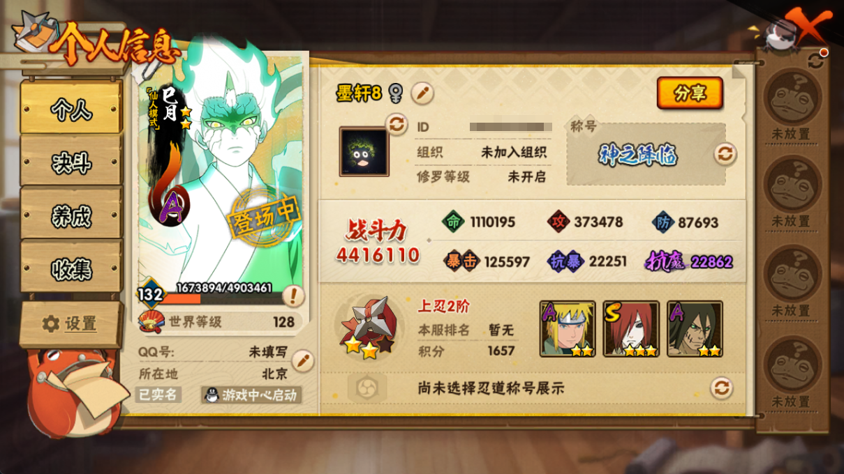 441W战力金水忍战樱6S+泳装鼬13A战力441账号等级1