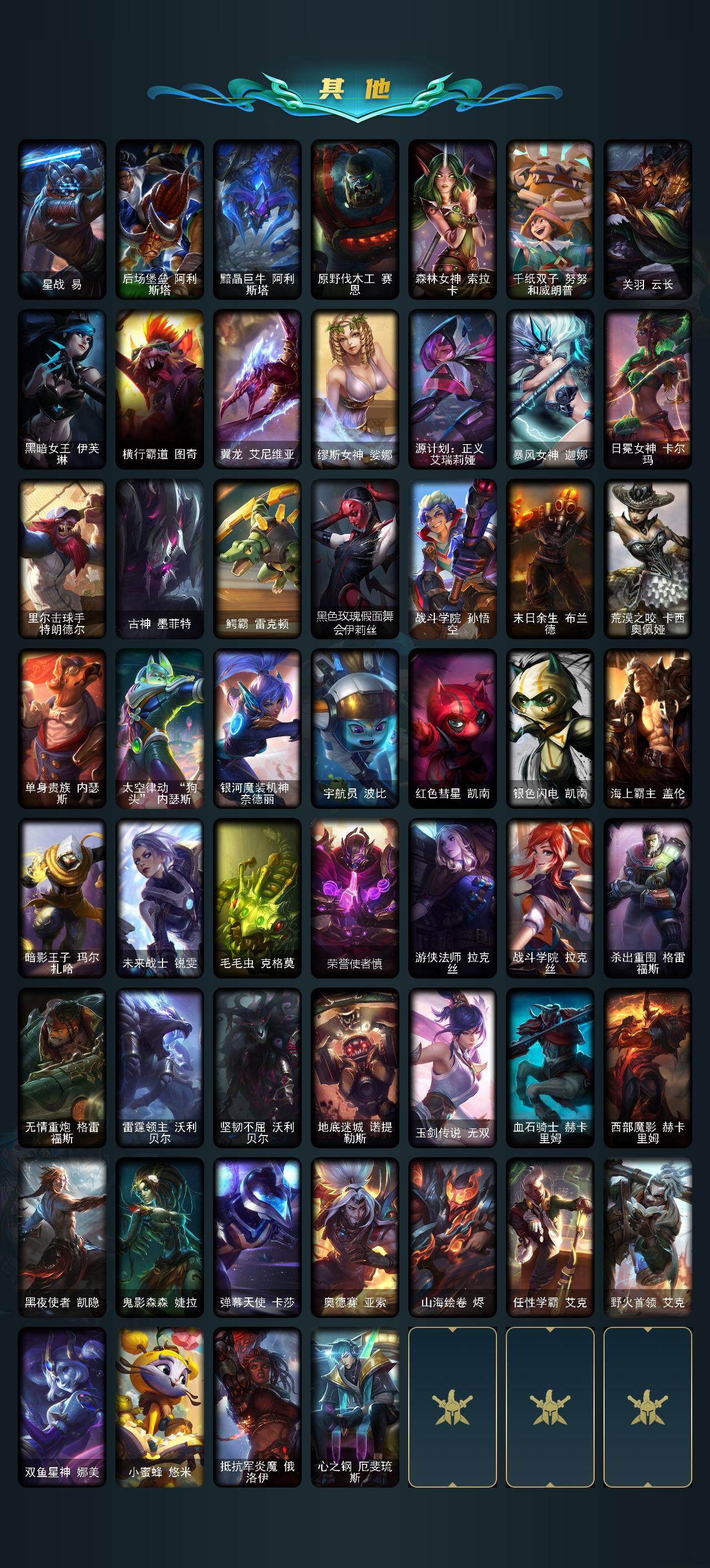 172英雄/115皮肤/3终极/2神话/14限定/7臻彩/34炫彩/9传说/27史诗