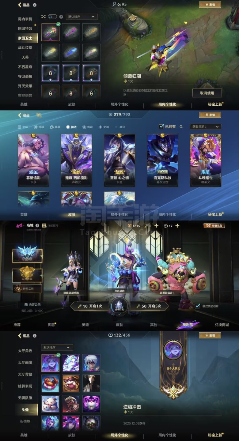苹果V,可转安卓!5万收藏积分,279皮肤!终极金克丝!2典藏,8神话!玄金队旗!1600橙色石头!