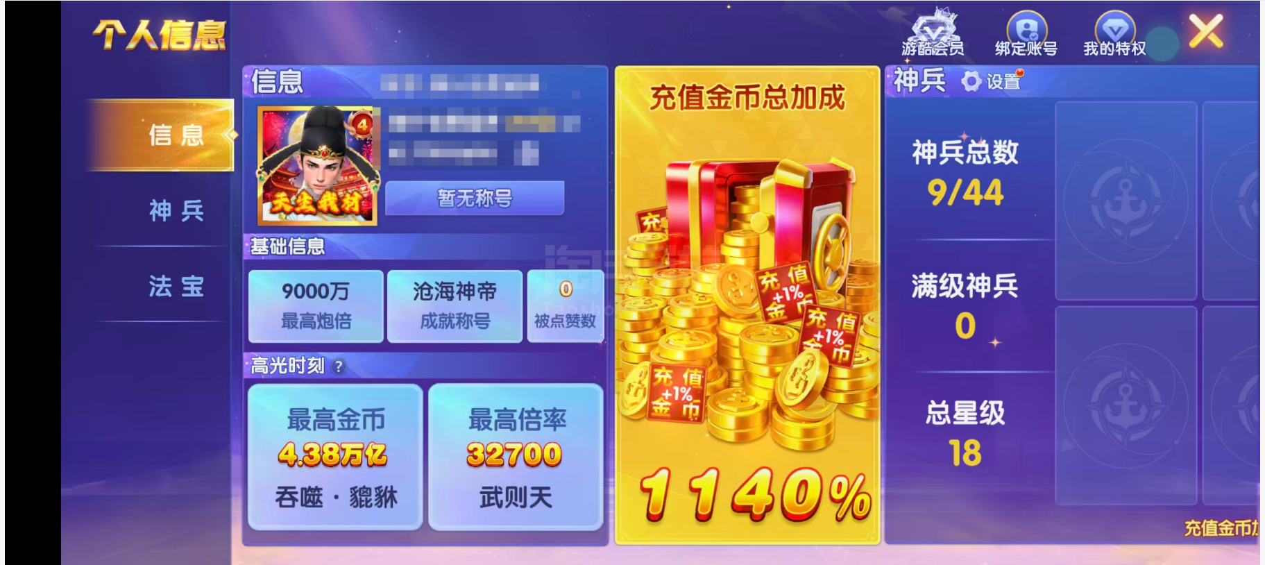 官服文字登陆-9000万炮,V4-1140加成,回归号,无绑