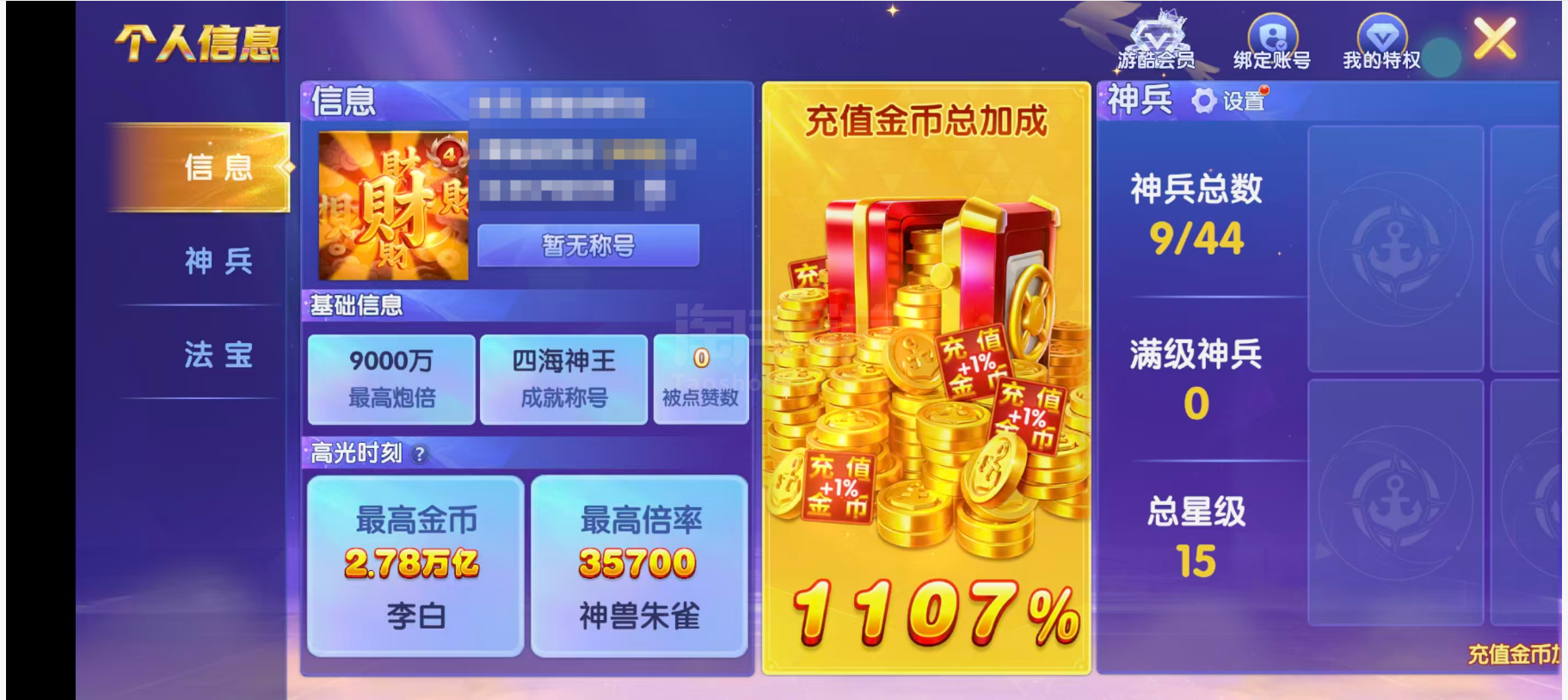 官服文字登陆-9000万炮,V4-1107加成,回归号,无绑