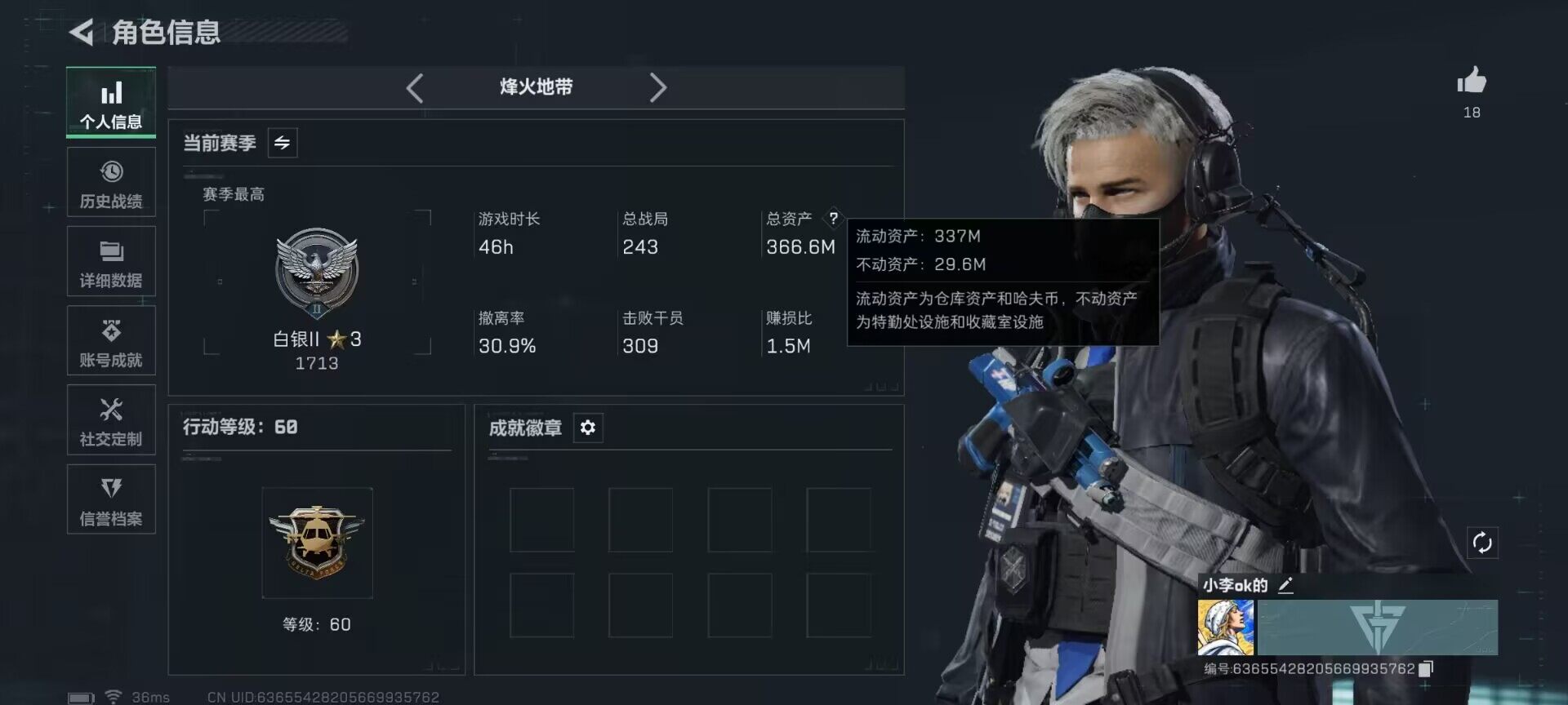 总资产(M):366M/哈夫币(K):92573K