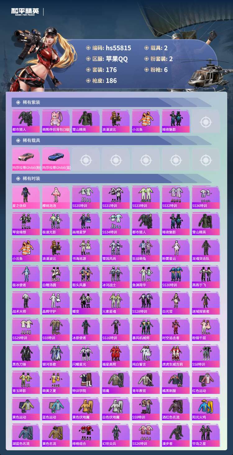 hs55815 苹果手Q-15王牌印记-2粉装-6特效枪-2载具-65817热力值-176套装-18