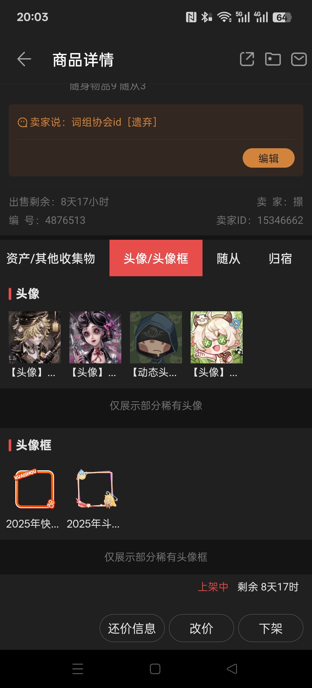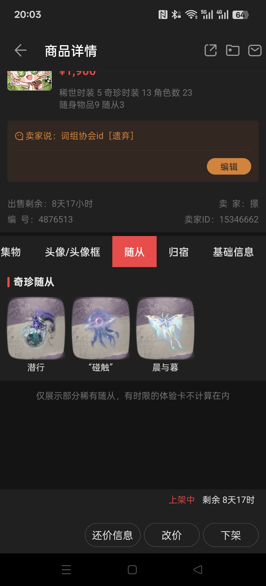 单字ID撔,双字词组协会遗弃,麒麟商人,三个虚妄挂件,三个虚妄随从