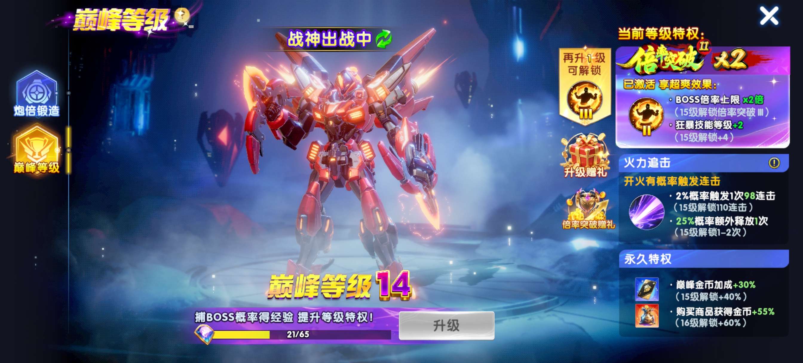 捕鱼大作战小米版本,原60亿炮,金币7.2兆,巅峰14级,战神刀手1级姜维,破产回20,低价出售。