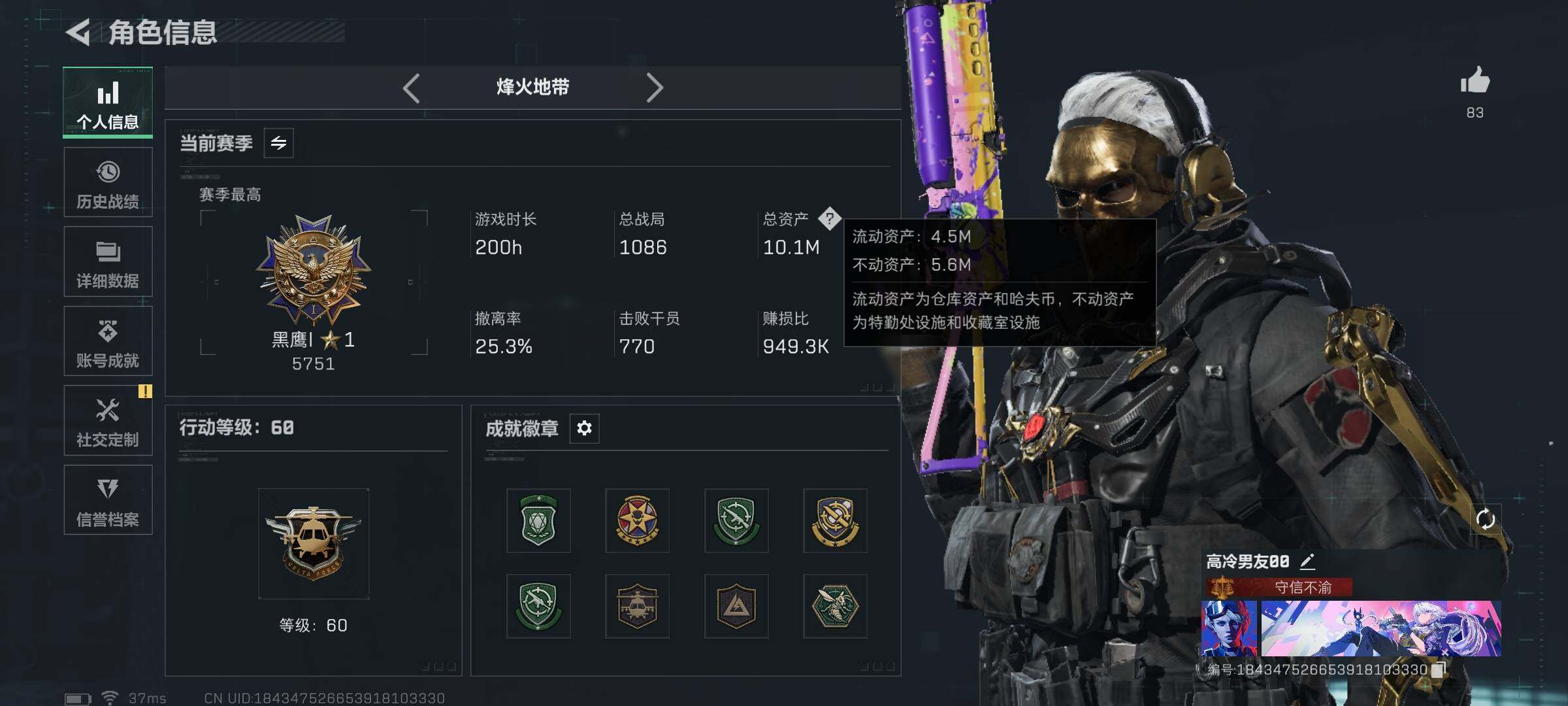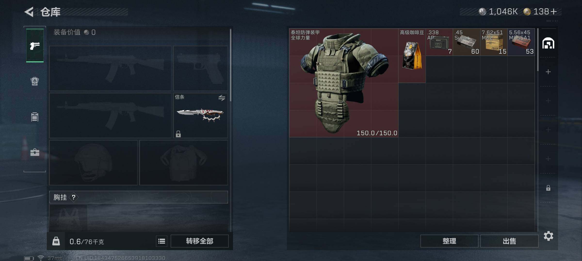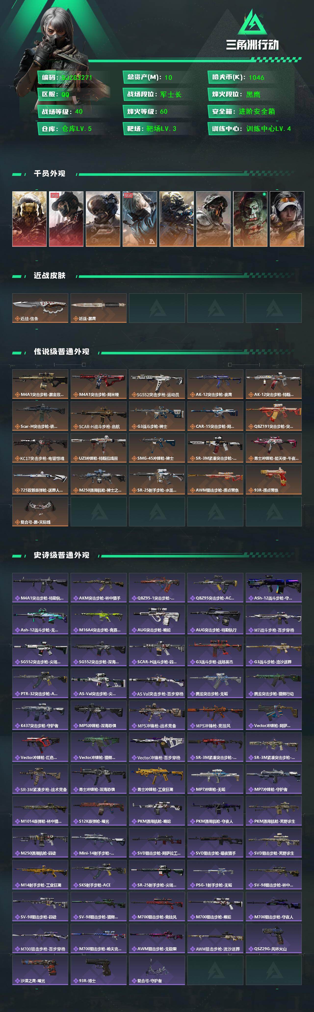 总资产(M):10M/哈夫币(K):1046K/哈夫币(K):1046K/传说枪皮数:21/全面战场