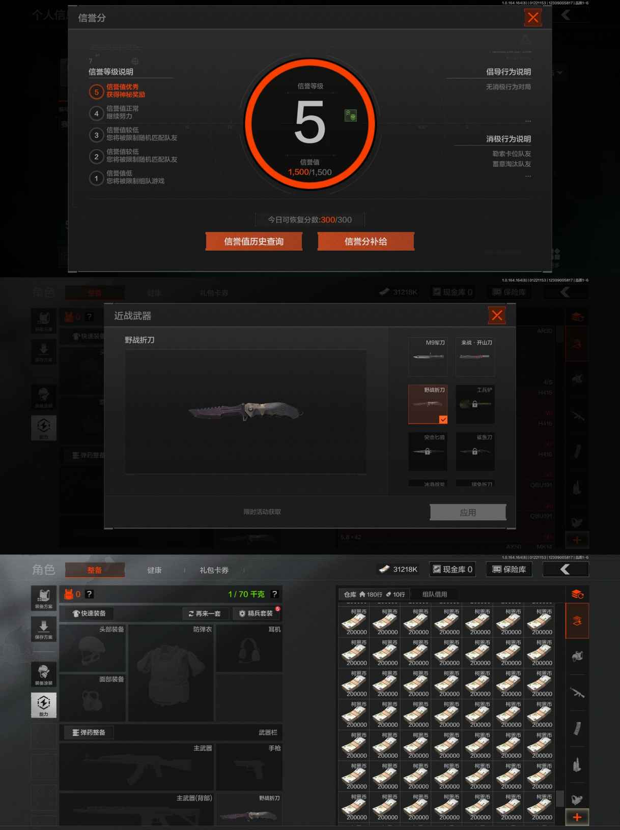 53M仓库价值 野战折刀 开山刀 7金枪 1金投掷物 科恩币31218K