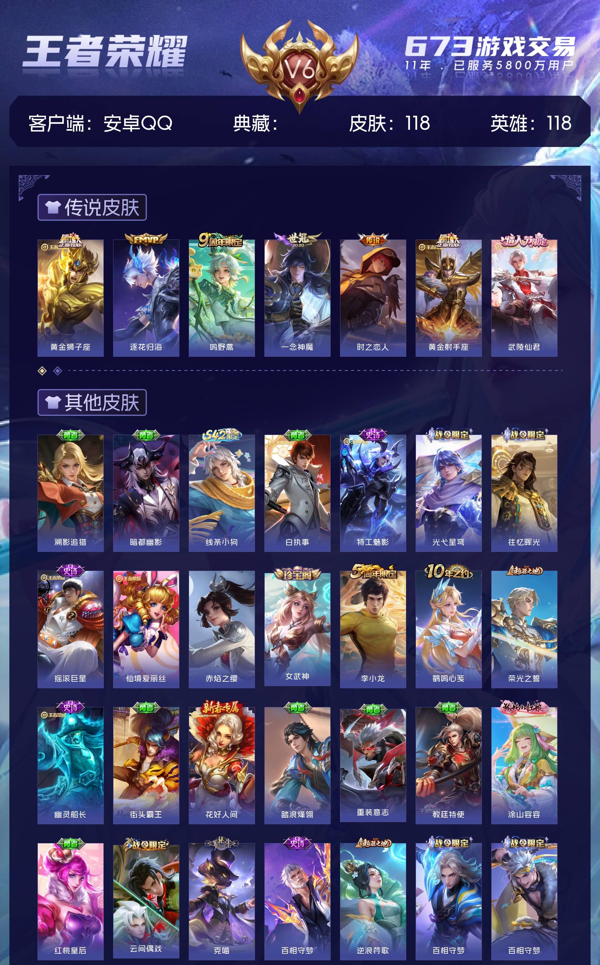 V6 皮肤118 英雄118 至尊星耀 传说7 其他皮肤115