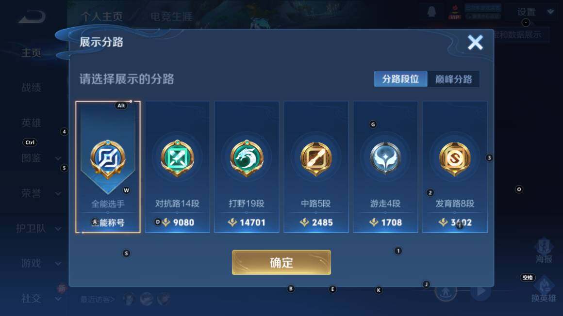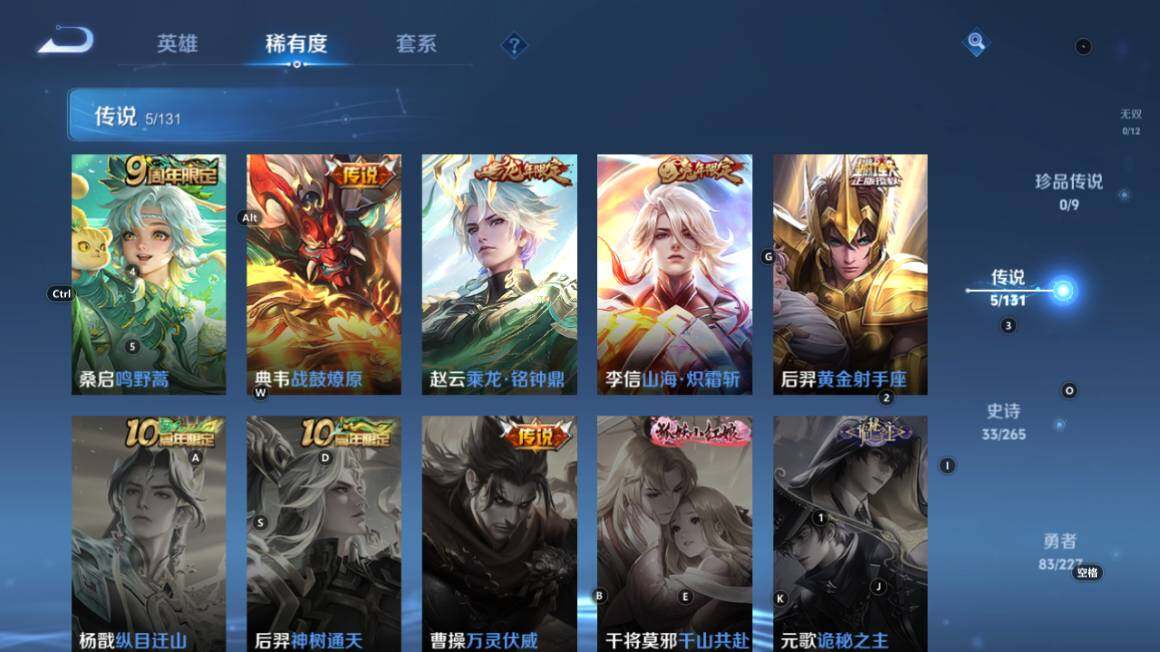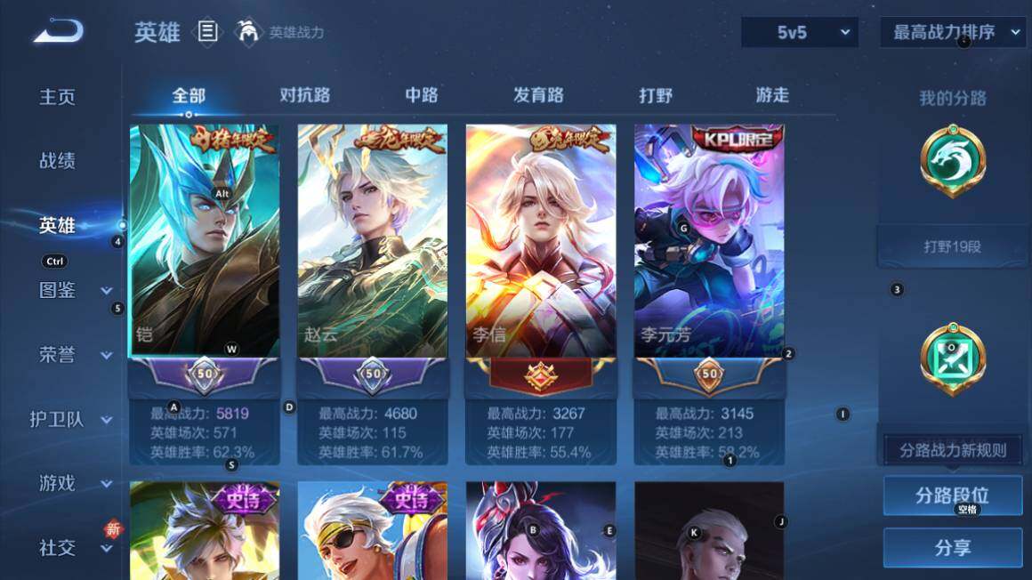 打野19段,对抗14段,2按键 安卓Q-V6-127英雄-143皮肤-1典藏皮肤-5传说-33史诗