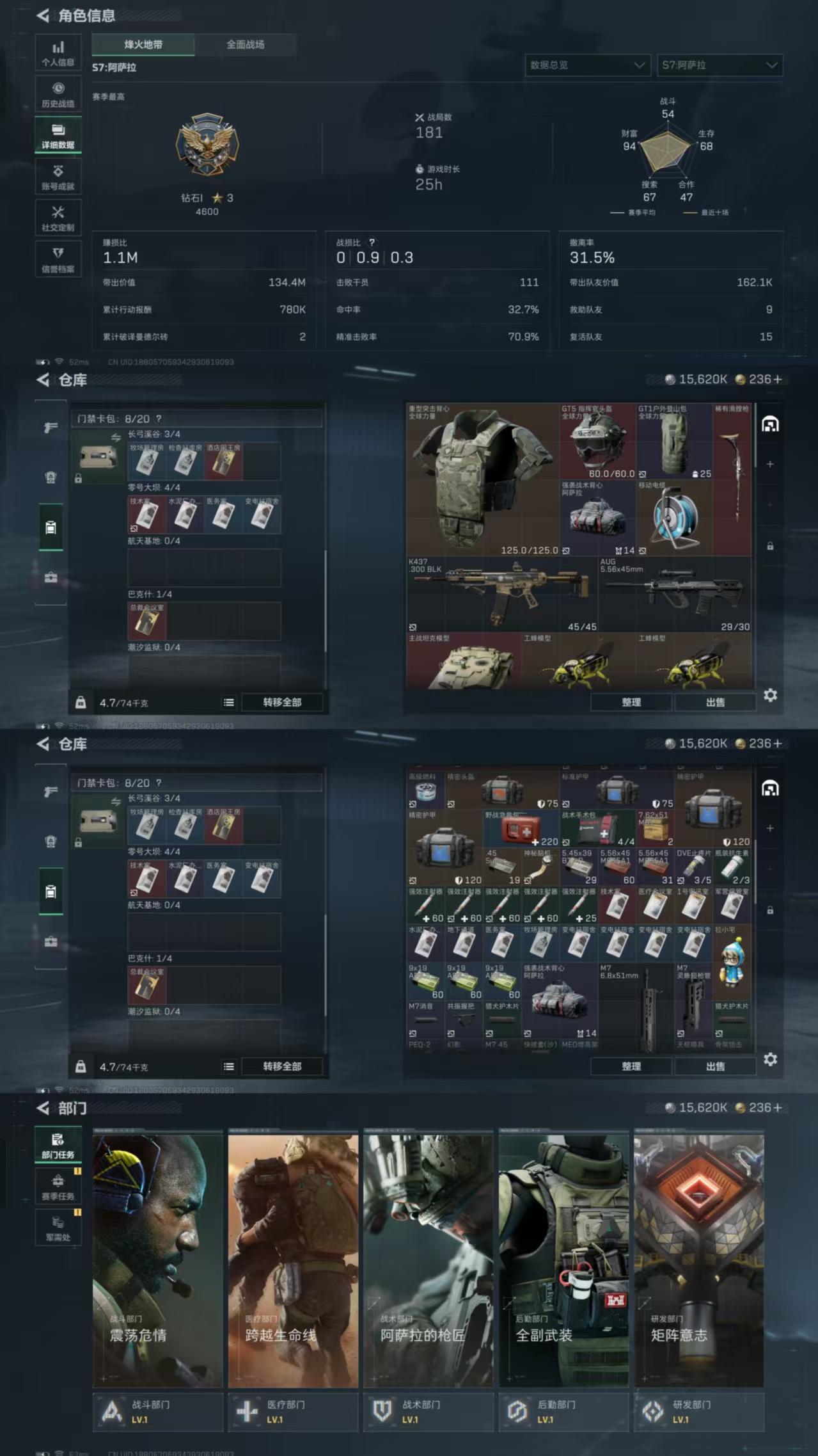 三端互通-总价值61.73M-哈夫币15,620.3-烽火地带等级41