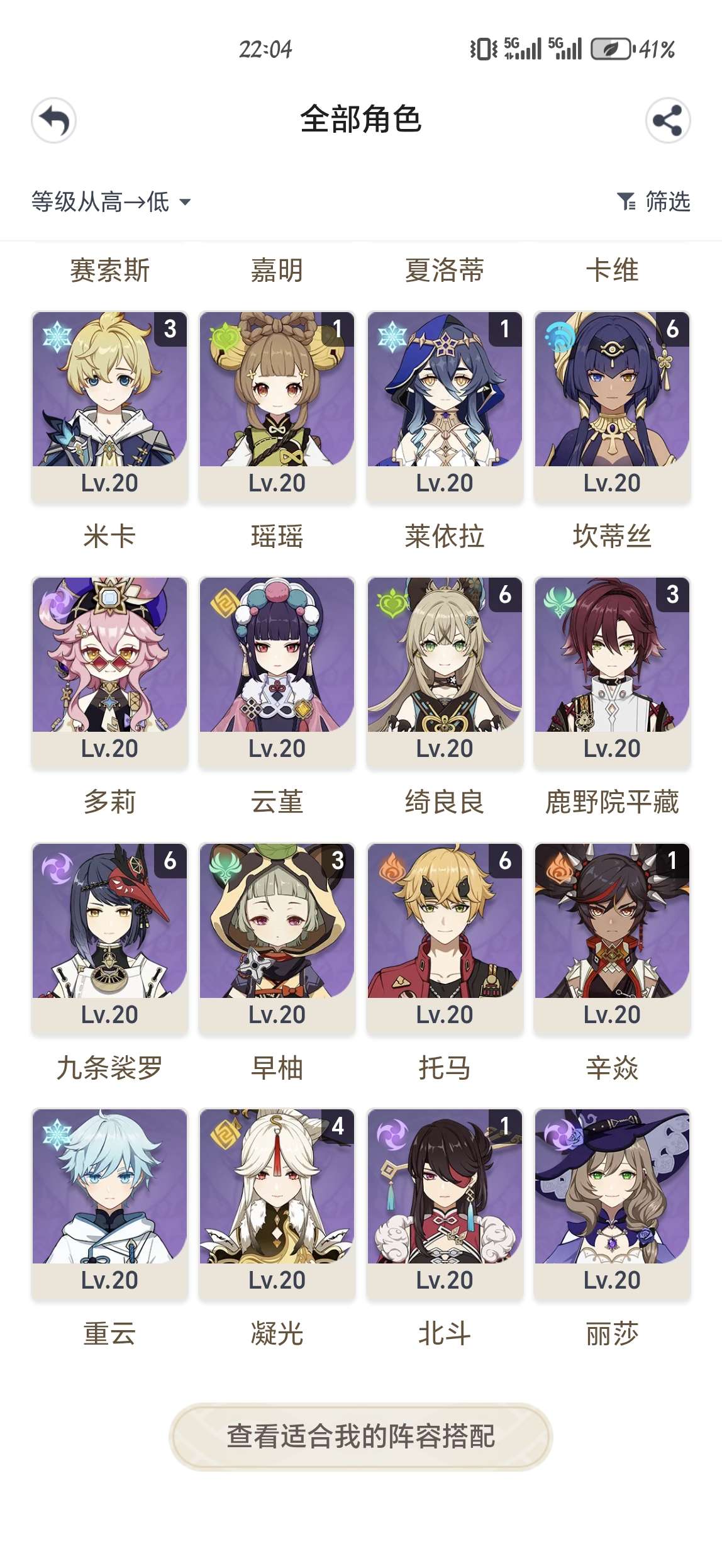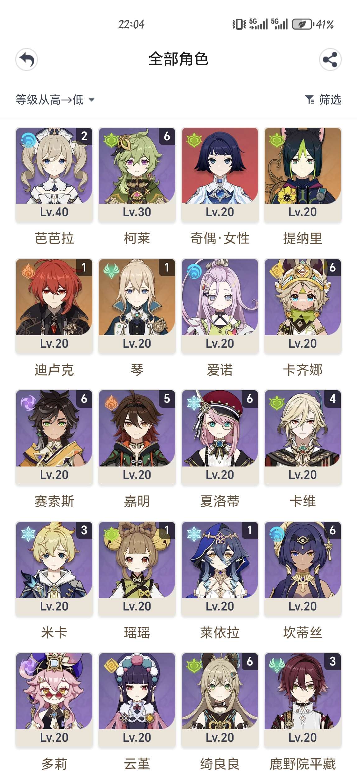 21仆人 21娜维娅 2命基尼奇,00少女,探索度低,主线到纳塔,卡池垫了70抽,还有10几抽