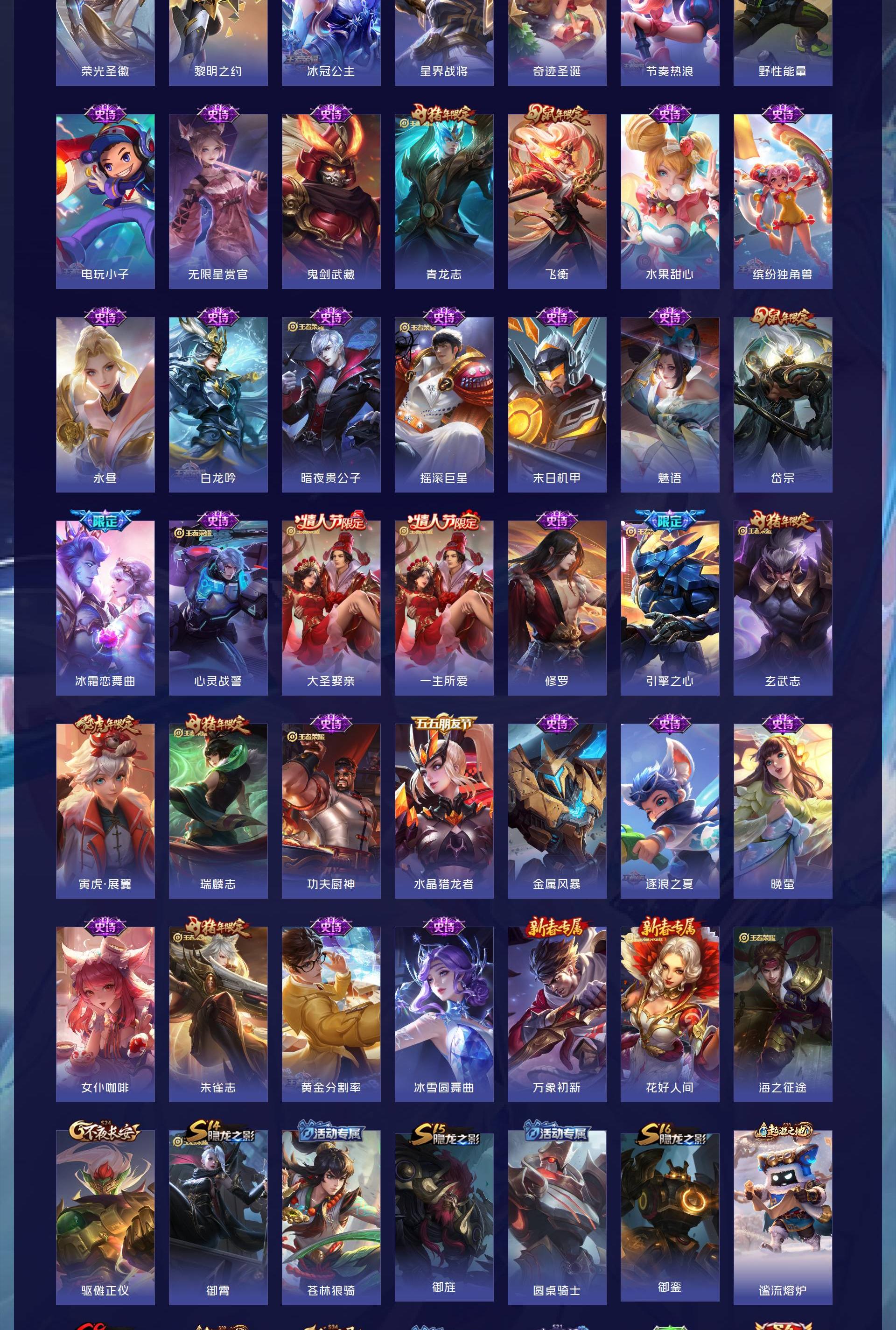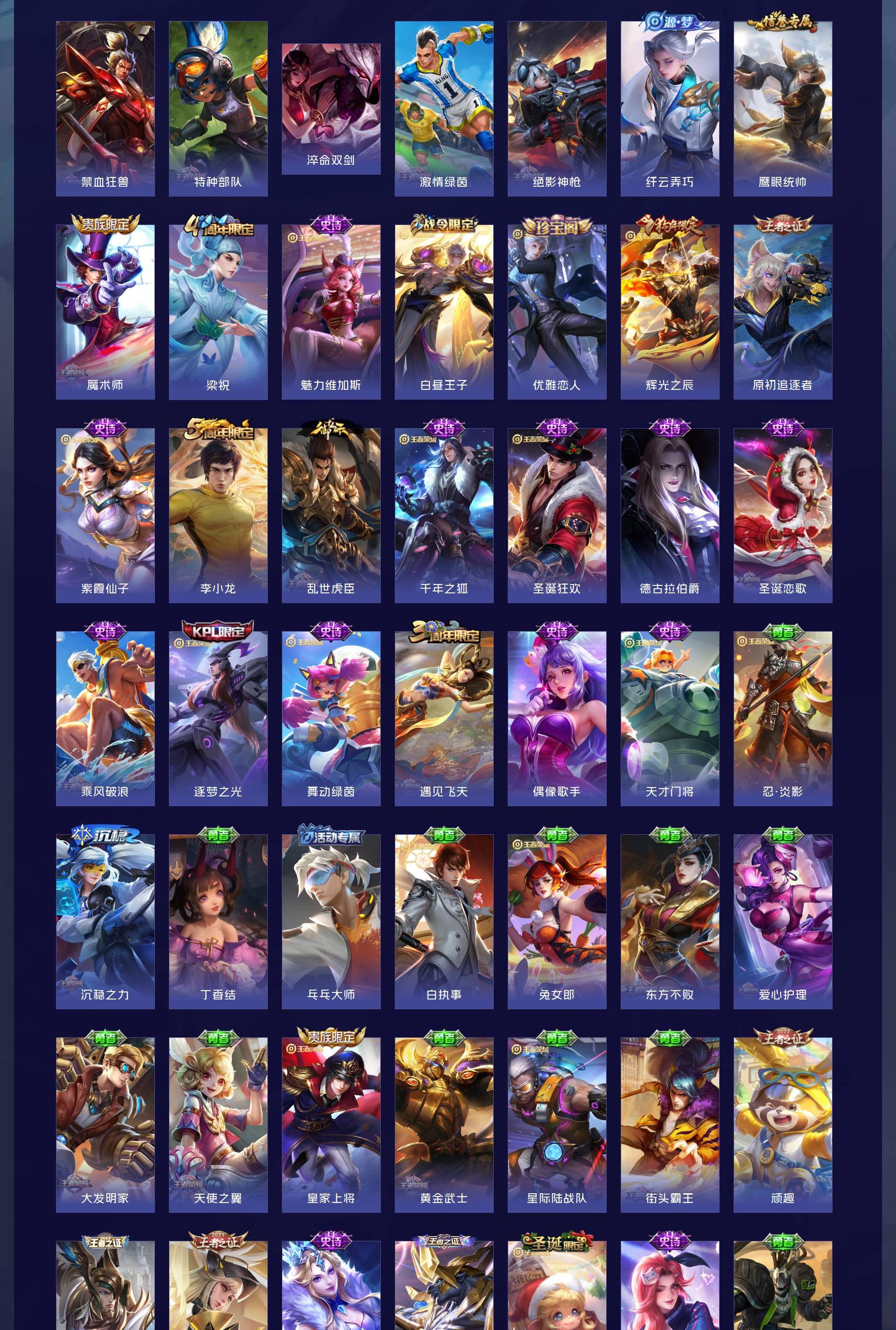 V8 皮肤238 英雄128 最强王者 传说12 其他皮肤232