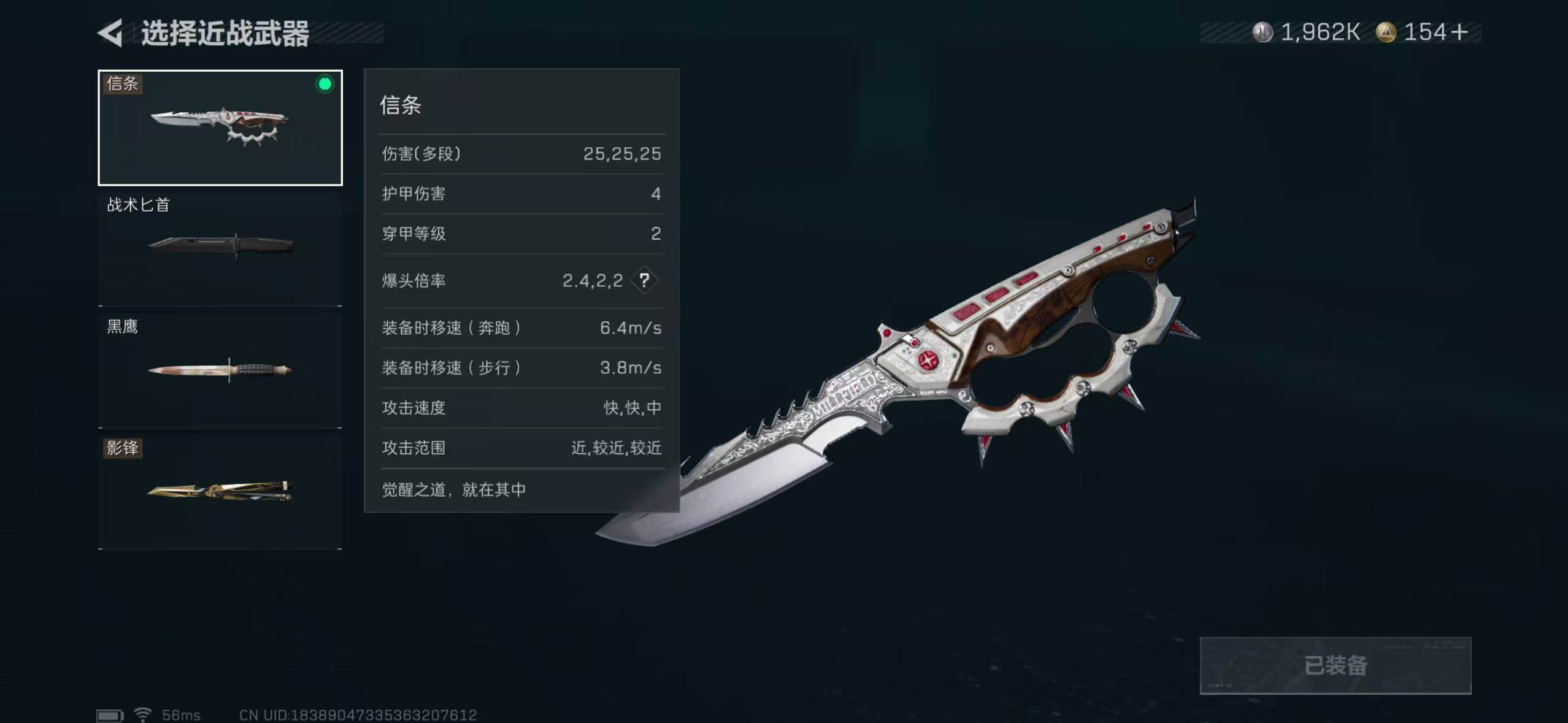 【近战皮肤】:近战-影锋,近战-信条,近战-黑鹰