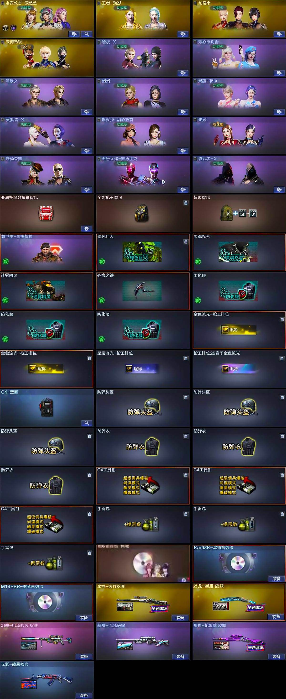 【皮肤】:幻神-电流骇客 皮肤,裁决-流光秘银,星神-枪娘默 皮肤,星神-破竹皮肤,无影-能量核心,屠龙-星耀 皮肤
