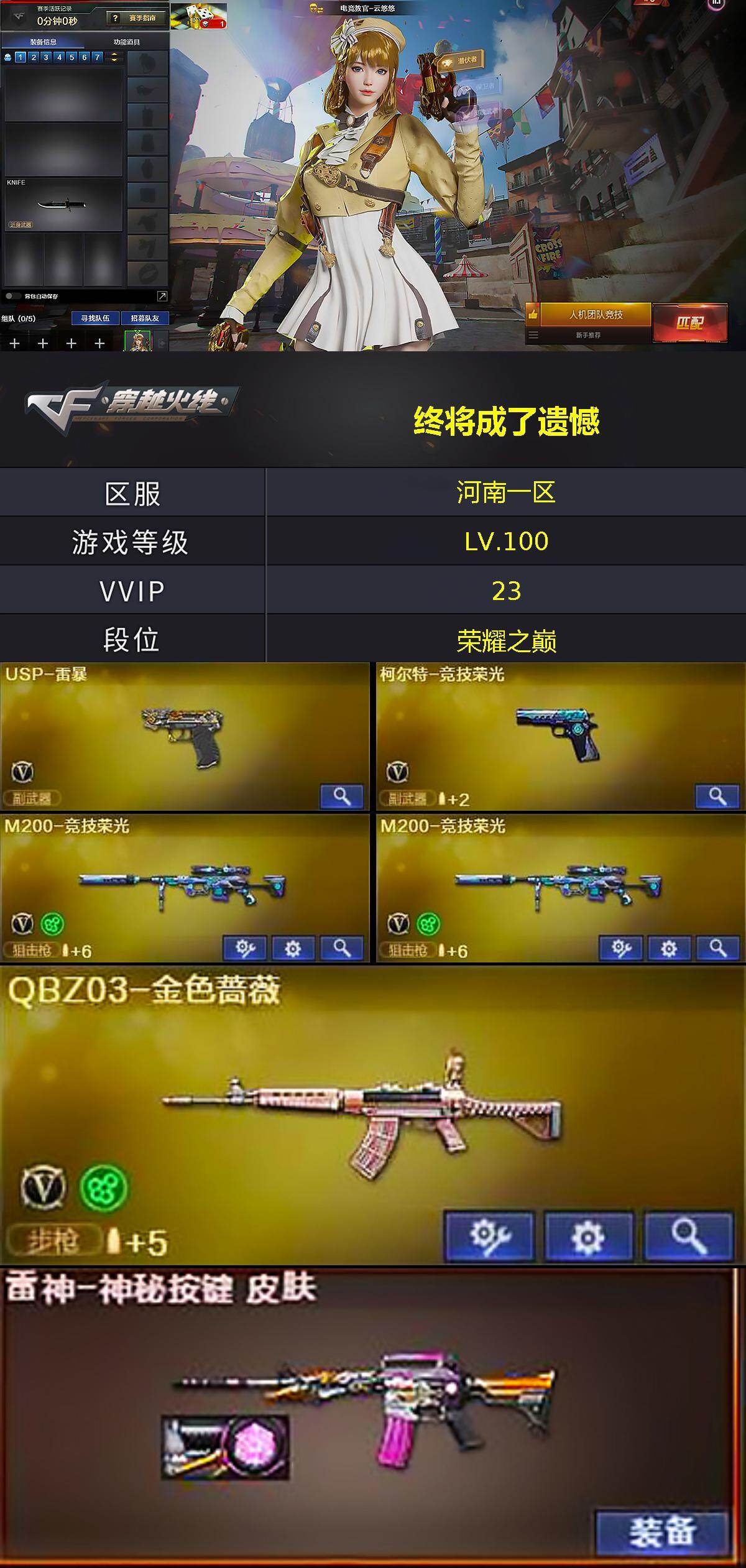 【热门武器】:QBZ03-金色蔷薇,HK417-朱雀*2,M200-竞技荣光*2,USP-雷暴