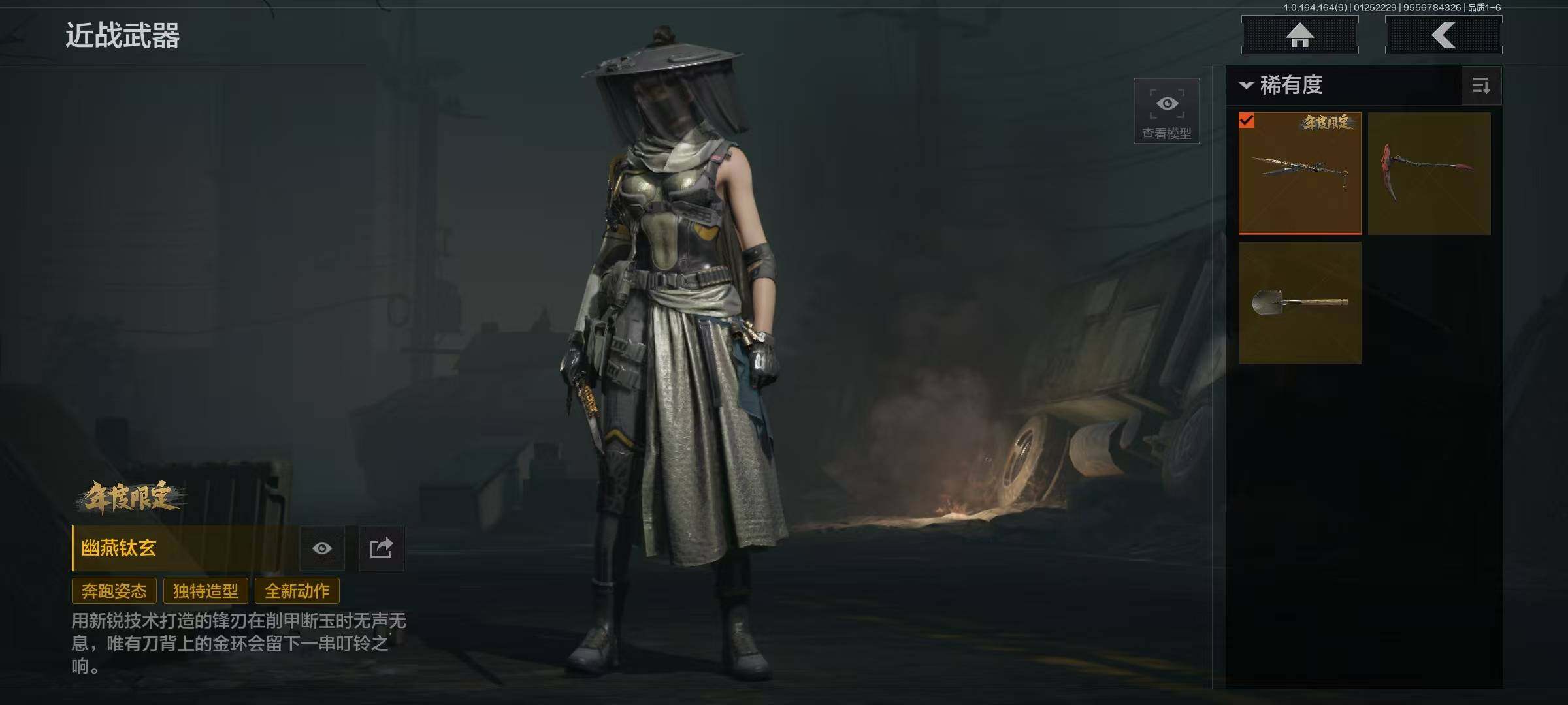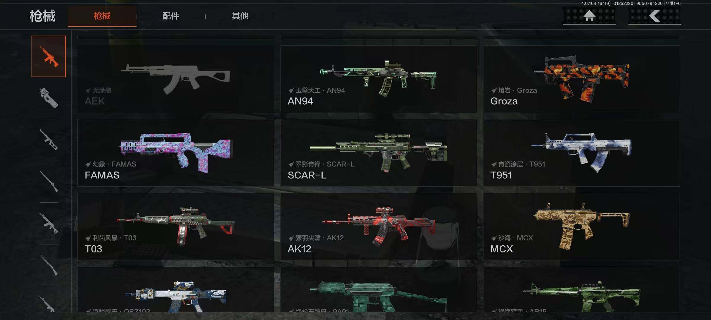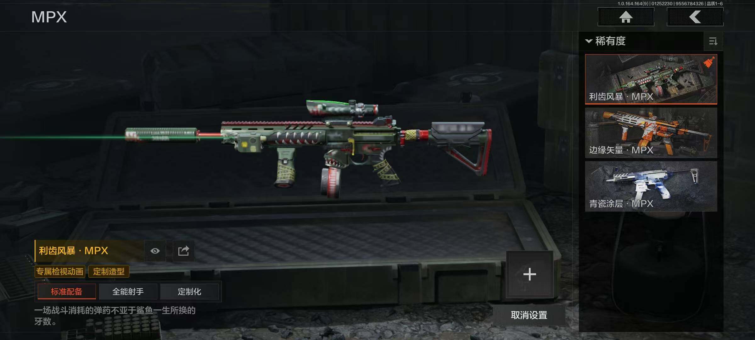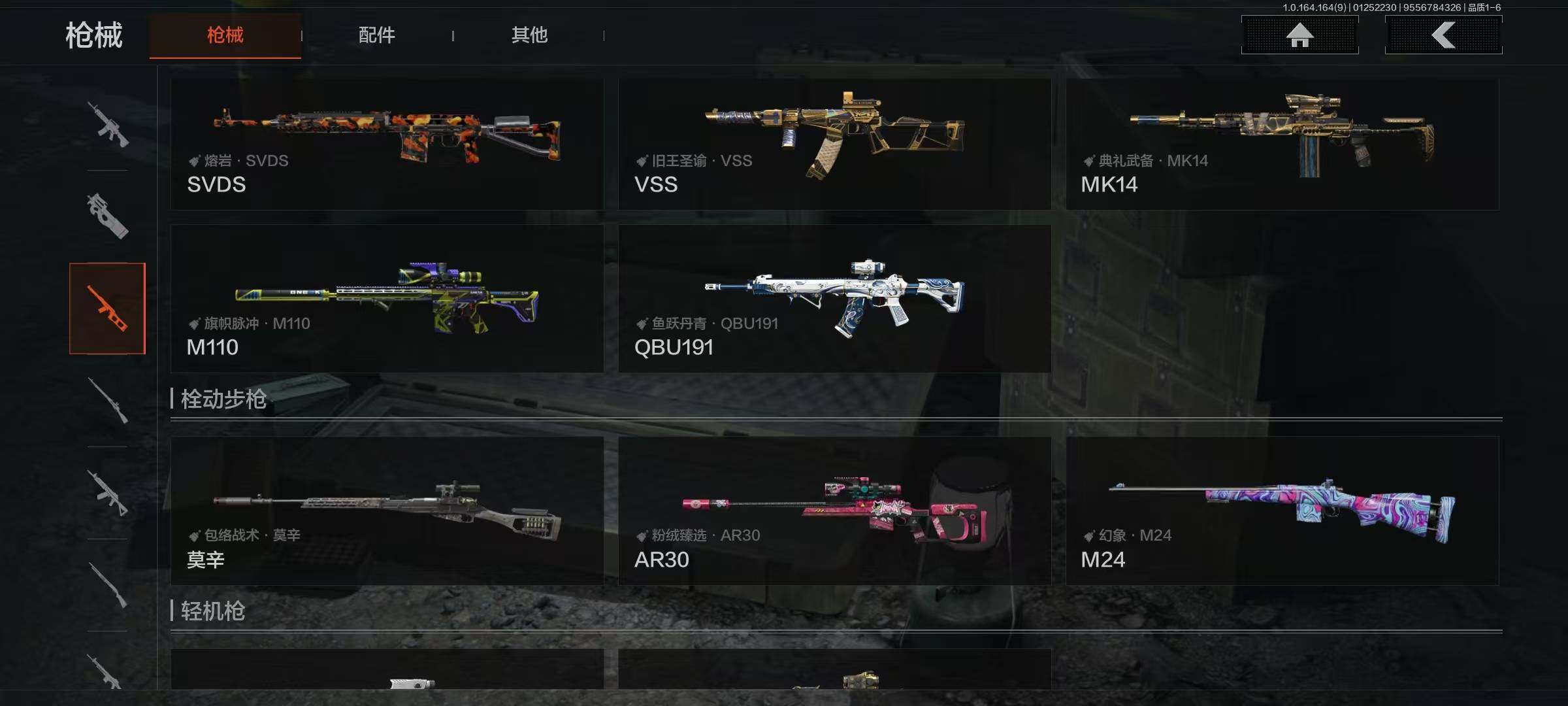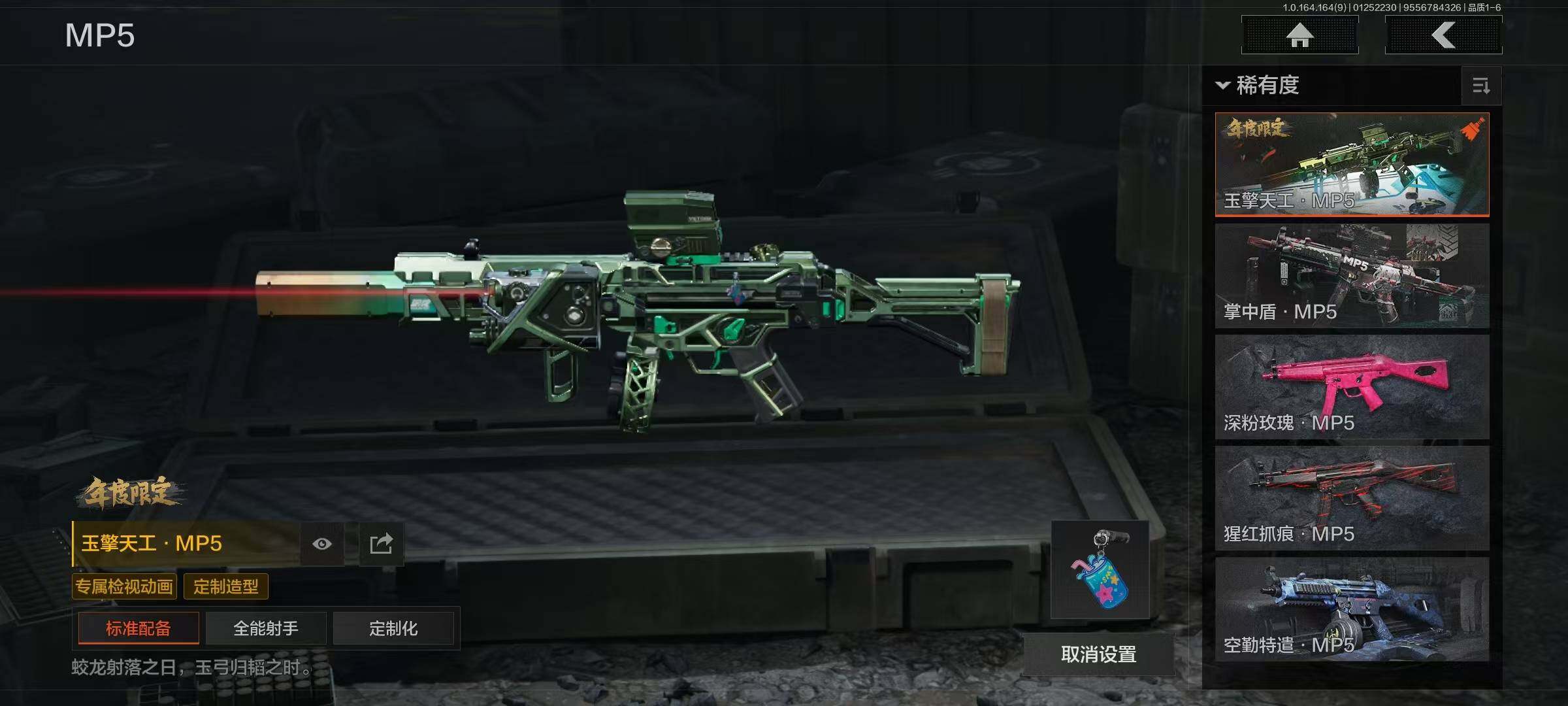 幽燕钛玄/收割者/工兵铲/告丧夜曲AUG/告丧夜曲AR57/玉擎天工AN94/玉擎天工MP5/利齿风暴MPX/旧王圣谕VSS/清影