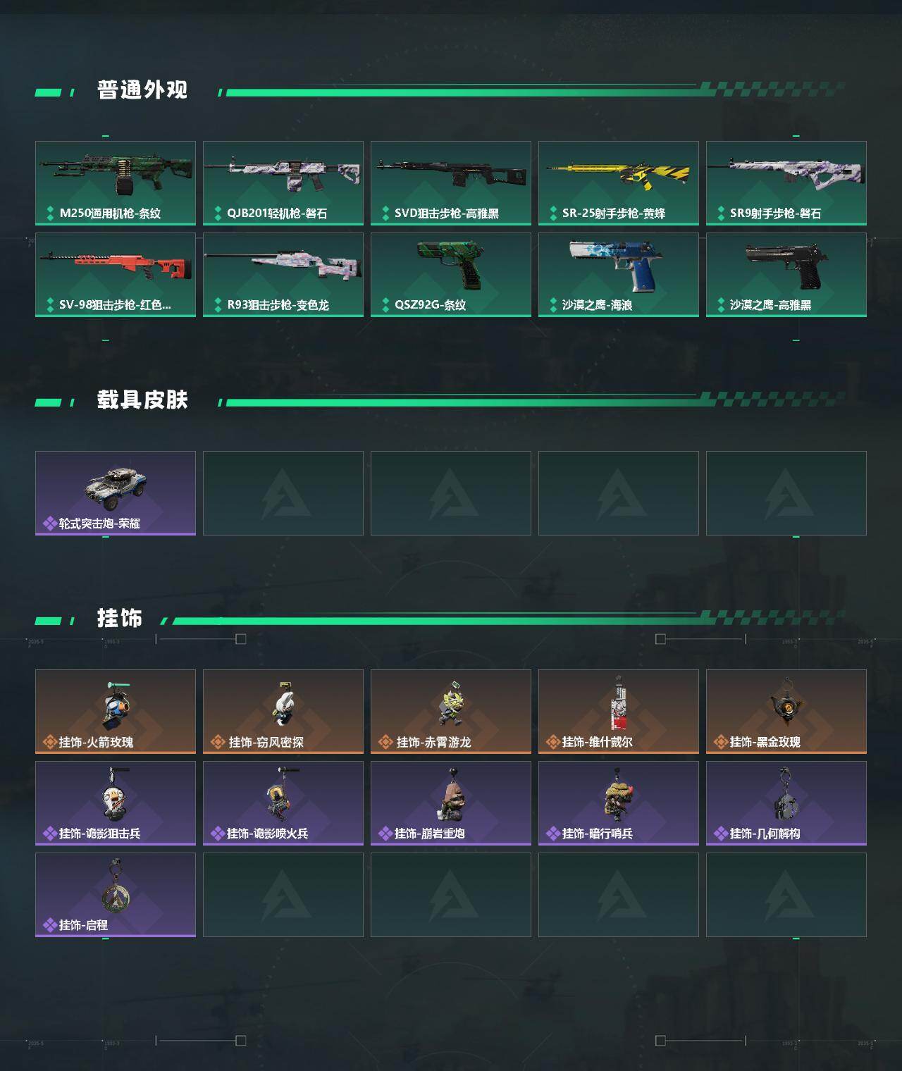 【SJZX1373】总资产(M):53M/哈夫币(K):6391K/哈夫币(K):6391K/传说枪皮数:6/全面战场等级:5_段位:无段位/烽火地带等级:60_段位:钻石/骇爪-维什戴尔/露娜-金牌射手/近战-信条/近战-黑鹰/SG552突击步枪-运动员/SCAR-H战斗步枪-启航/K437突击步枪-几何解构/M250通用机枪-几何解构/SR-9射手步枪-几何解构/R93狙击步枪-维什戴尔/AUG突击步枪-蝮蛇/M7战斗步枪-百步穿杨/G3战斗步枪-流沙送葬/AS Val突击步枪-百步穿杨/M
