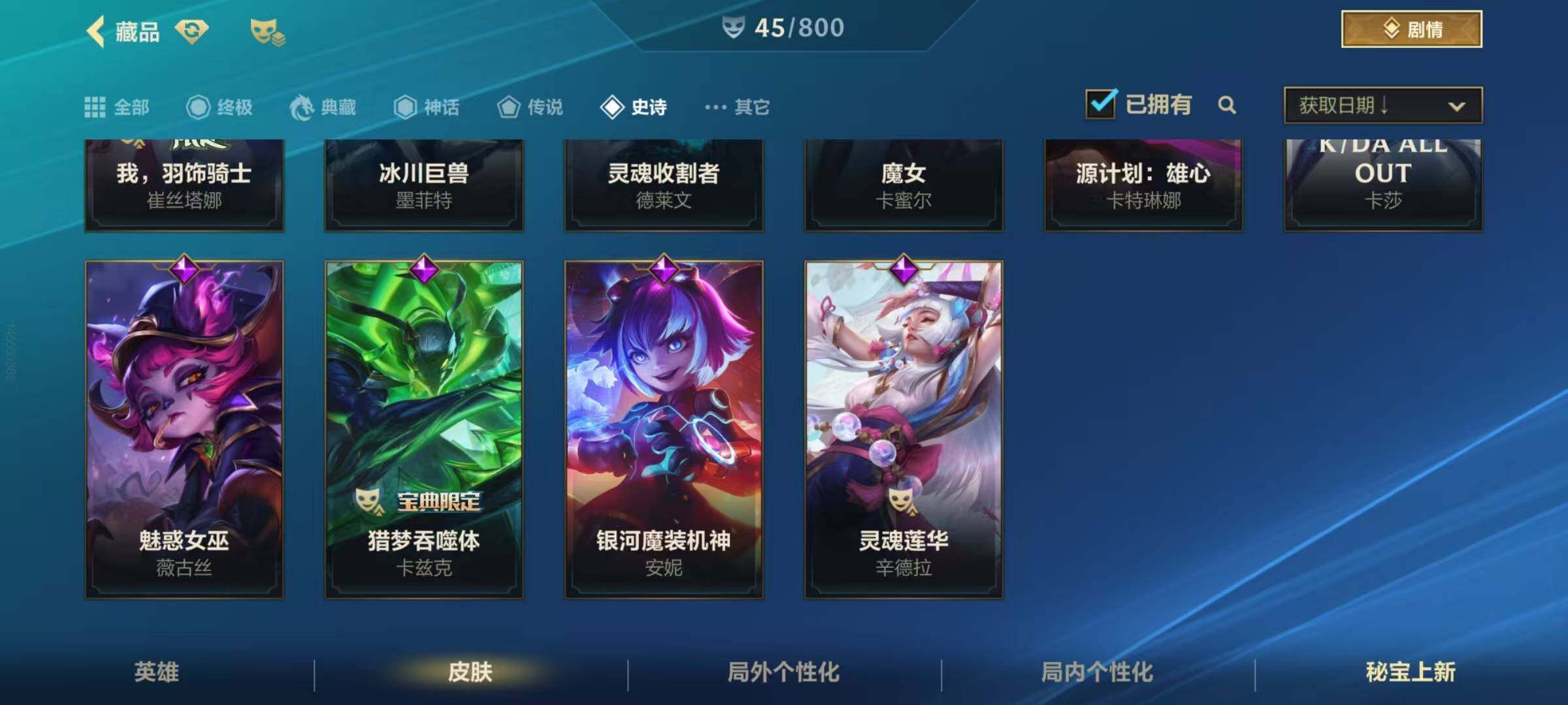 【LSQH19】60英雄/45皮肤/荣耀黄金/心之钢 凯隐/星之守护者 阿狸/日蚀骑士 蕾欧娜/炼狱魔犬 内瑟斯/灵魂莲华 瑟提/神龙尊者 驭风啸龙 易/源计划:联合 艾希/地狱之门卫士 加里奥/源计划:泯灭 雷克顿/猎梦吞噬者 卡兹克/灵魂莲华 辛德拉/K/DA ALL OUT 卡莎/银河魔装机神 安妮/我,羽饰骑士 崔丝塔娜/魔女 卡蜜尔/灵魂收割者 德莱文/冰川巨兽 墨菲特/源计划:雄心 卡特琳娜/魅惑女巫 薇古丝/s7绯金战斧/s10王牌上将/S11王牌勇将/s15龙冕异士/s16冠翎飞