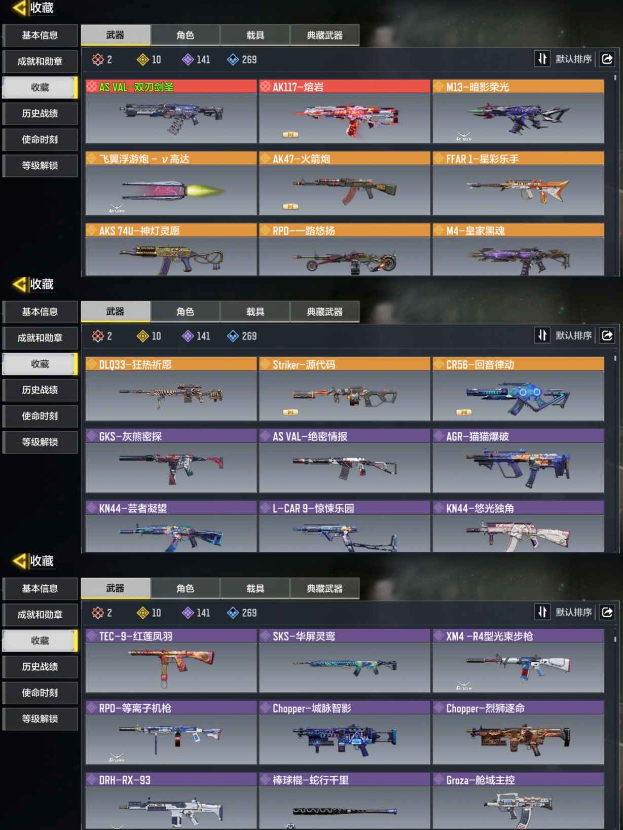 MHZ2536【2神话 10传说】安卓Q-等级200-史诗枪械141 【2神话】 AS VAL-双刃剑圣 AK117-熔岩 【10传说】 M13-暗影荣光 飞翼浮游炮-v高达 AK47-火箭炮 RPD-一路悠扬 M4-皇家黑魂 DLQ33-狂热祈愿 Striker-源代码 CR56-回音律动