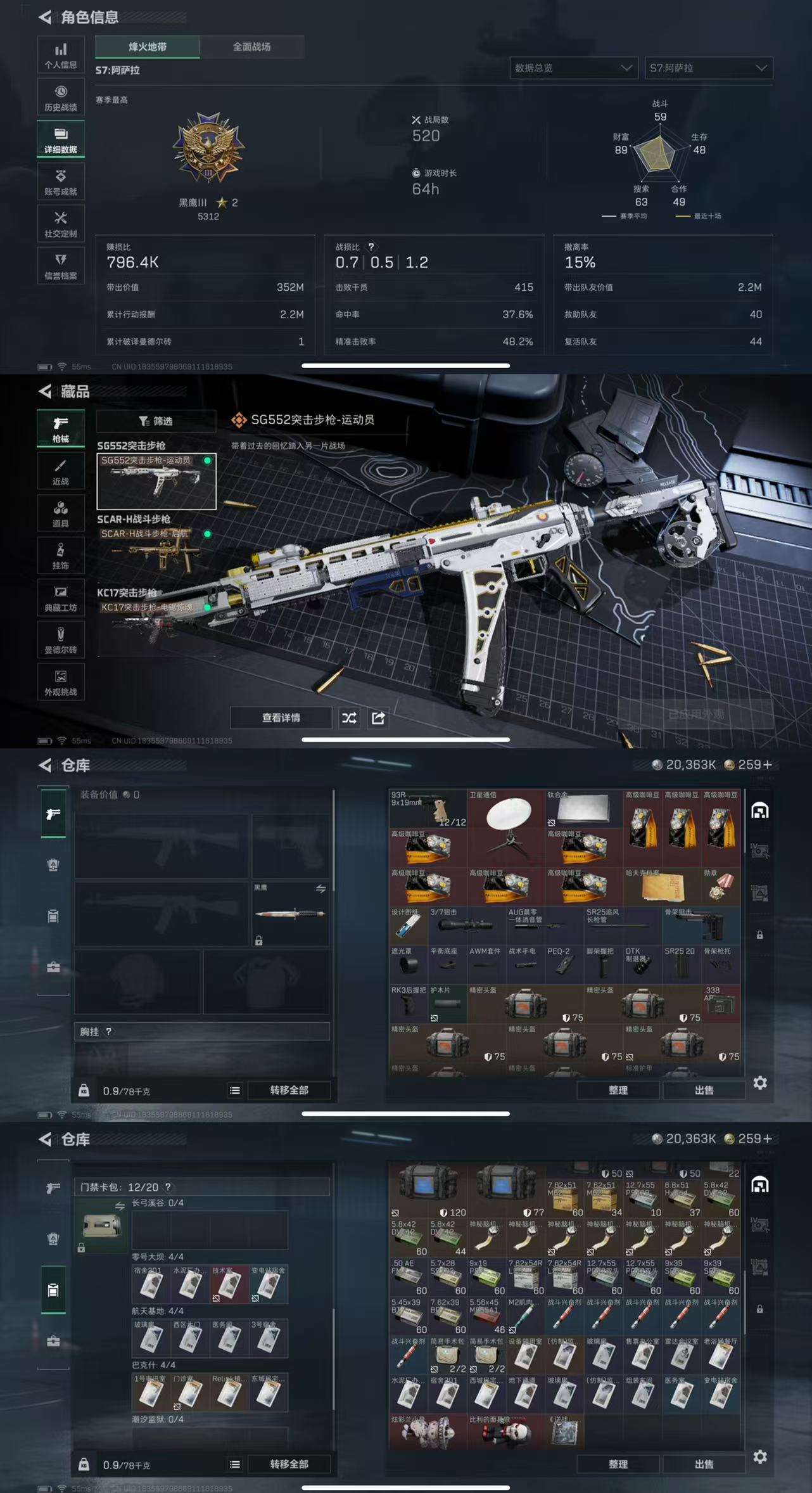 135红狼-电锯惊魂-满级号-烽火等级60 总资产61M 哈夫币20363K Q区三端互通 烽火段位黑鹰III【干员皮肤】红狼-电锯惊魂【枪皮】SG552突击步枪-运动员 SCAR-H战斗步枪-启航 KC17突击步枪-电锯惊魂