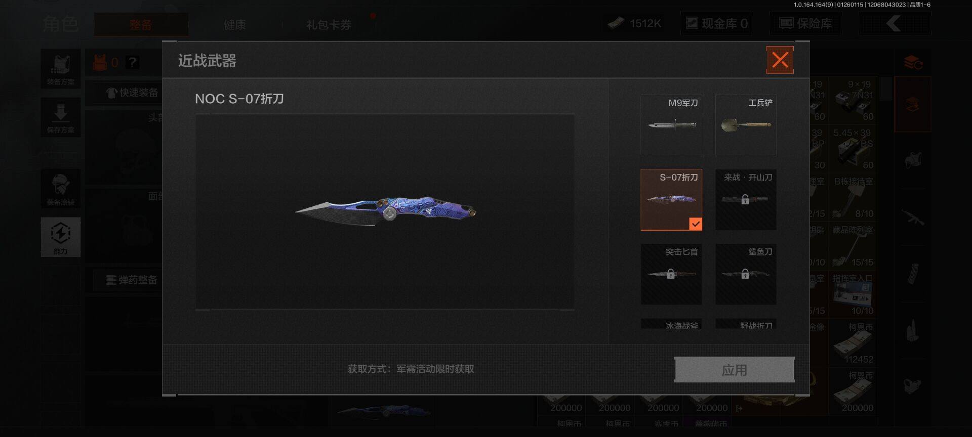 等级:30/段位:精英/仓库价值(百万):6.9/柯恩币:1512000/NOCs-7折刀/工兵铲/使徒欧瑞恩/利齿风暴MPX/旗帜AEK/告丧夜曲AR57/告丧夜曲AUG/竞技FAL