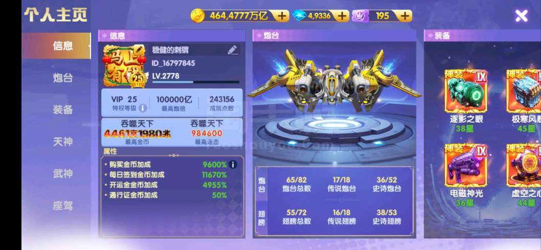 鱼乐达人安卓华为v25顶级账号9600加成 武神全满 4返点翅膀 最安全的账号
