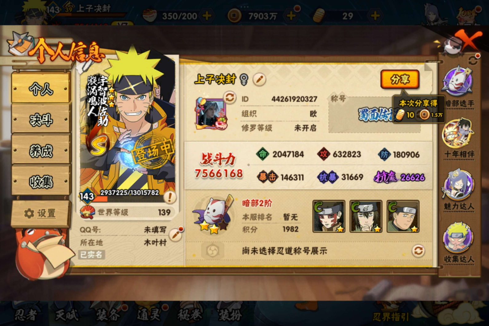安卓QQ-可二次-v7-七百五十万战力-S忍者数:13-