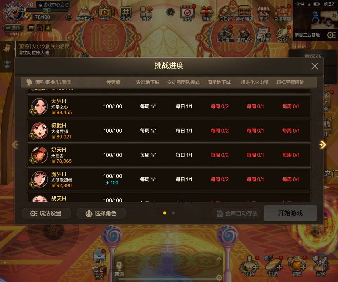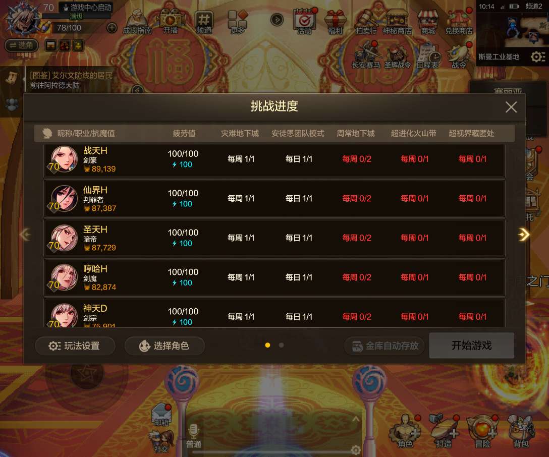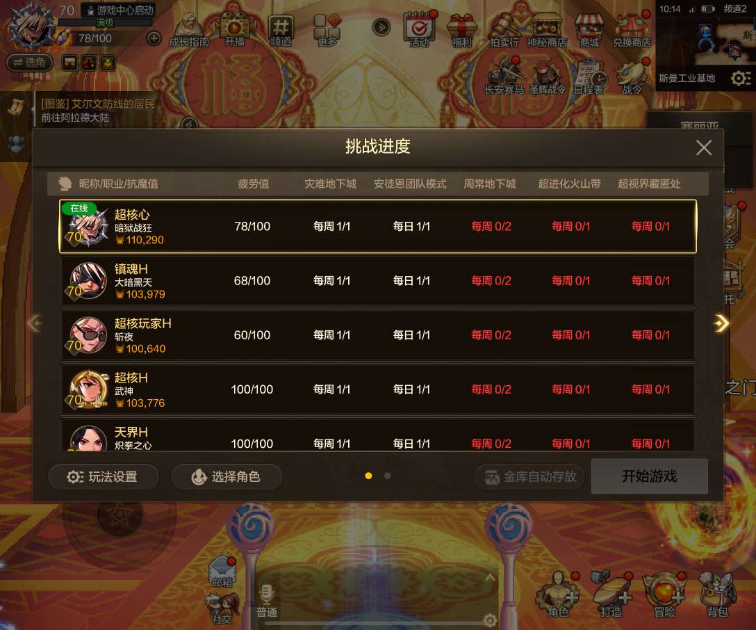 主C狂战11W抗魔,6套天空,武器增幅10,其余6。18个角色