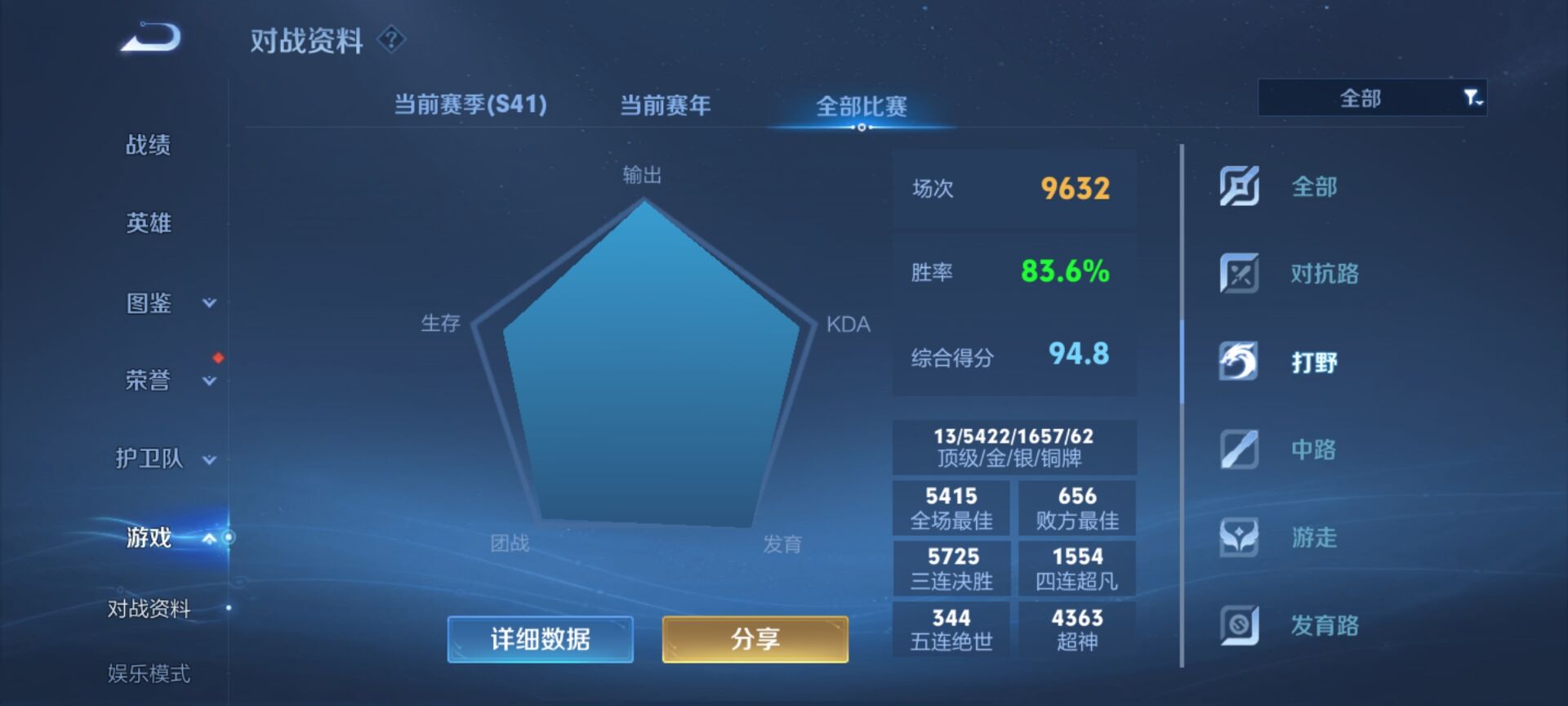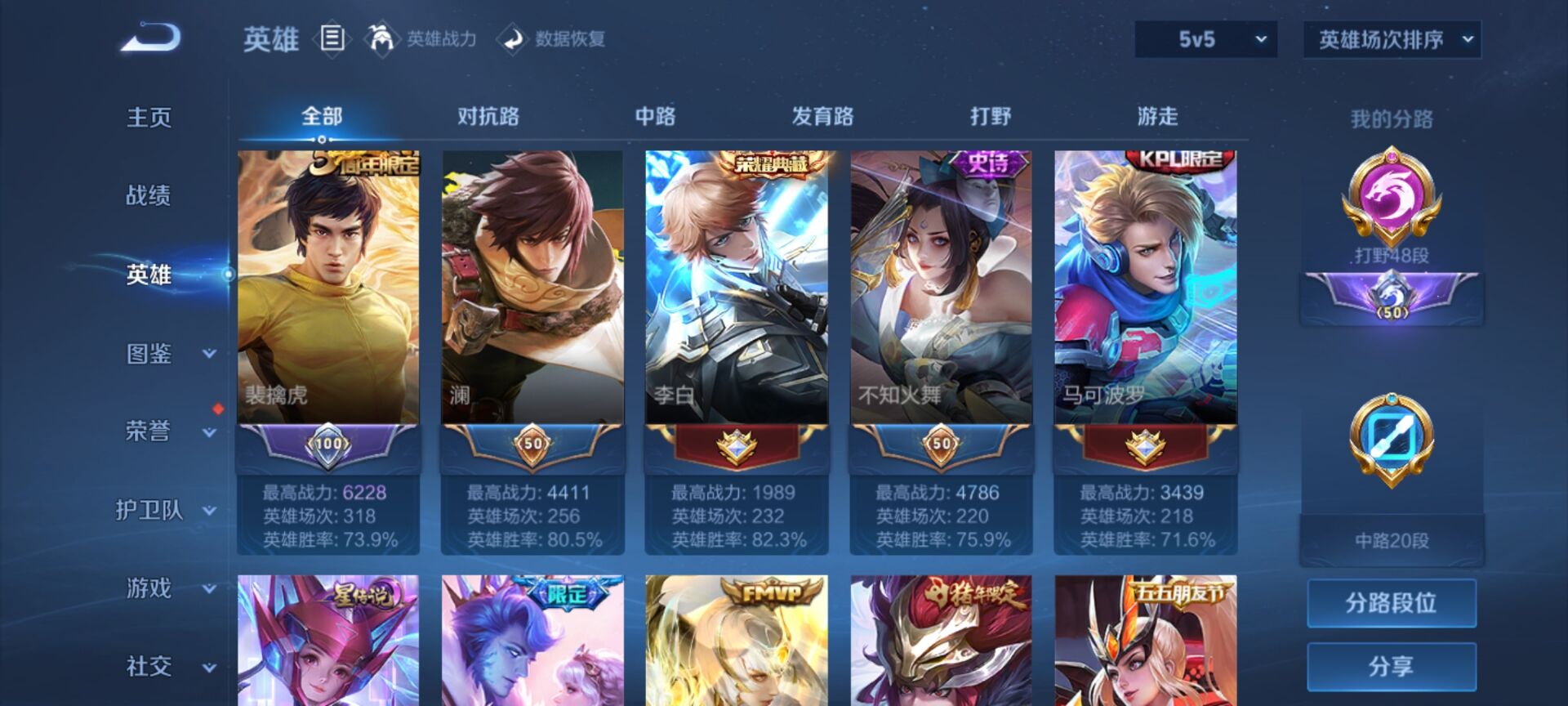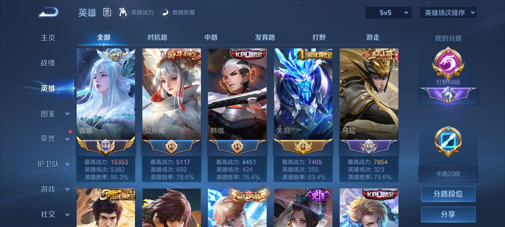 5000场露娜90胜率百评,露娜全皮+几十个高胜率百评英雄