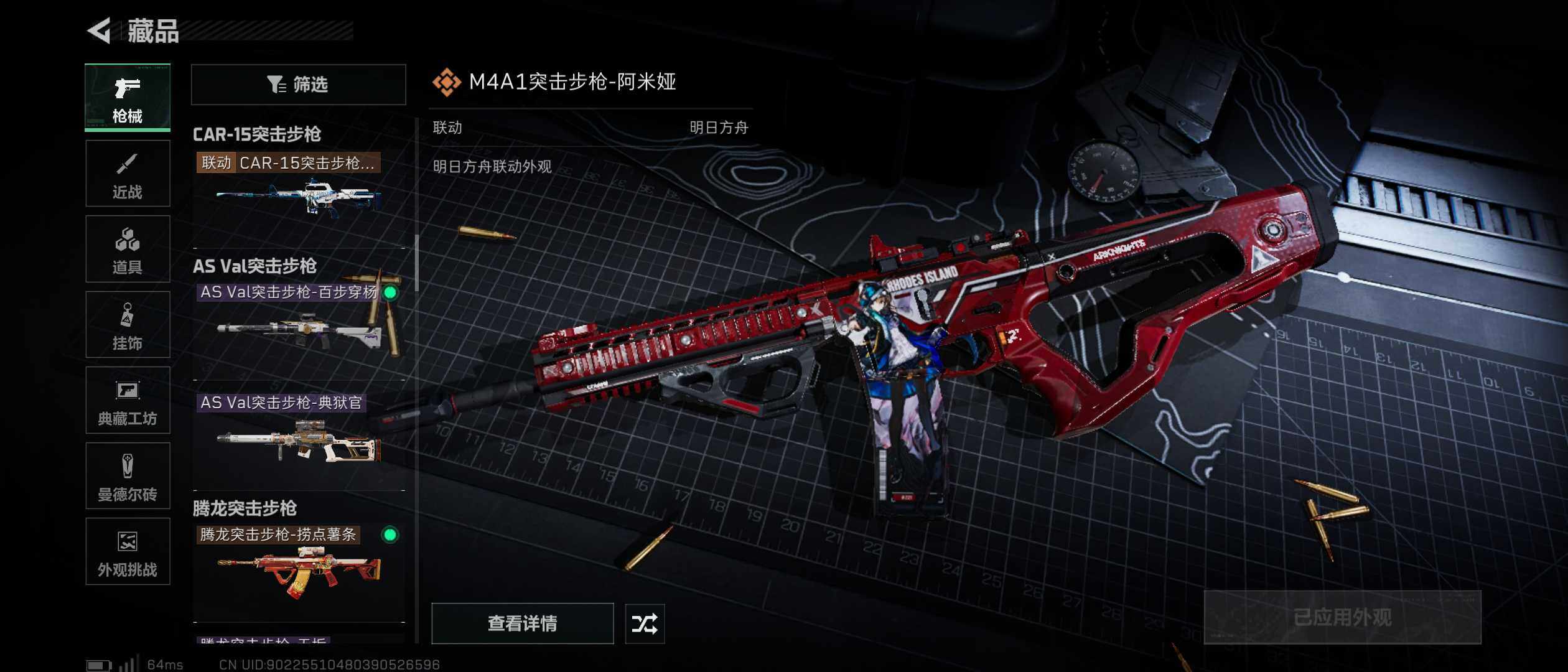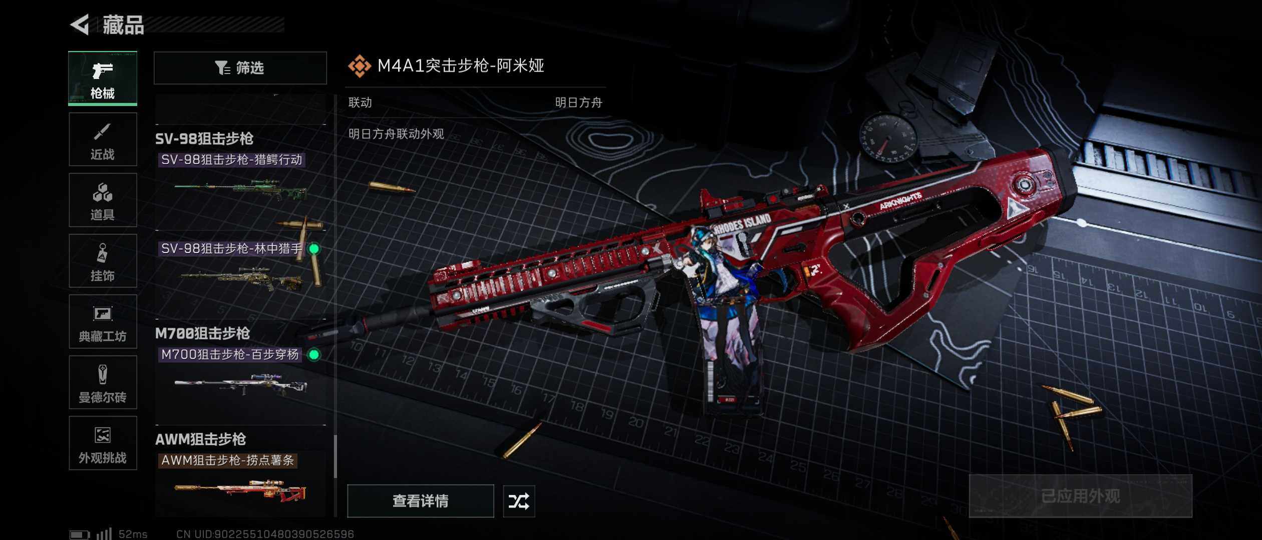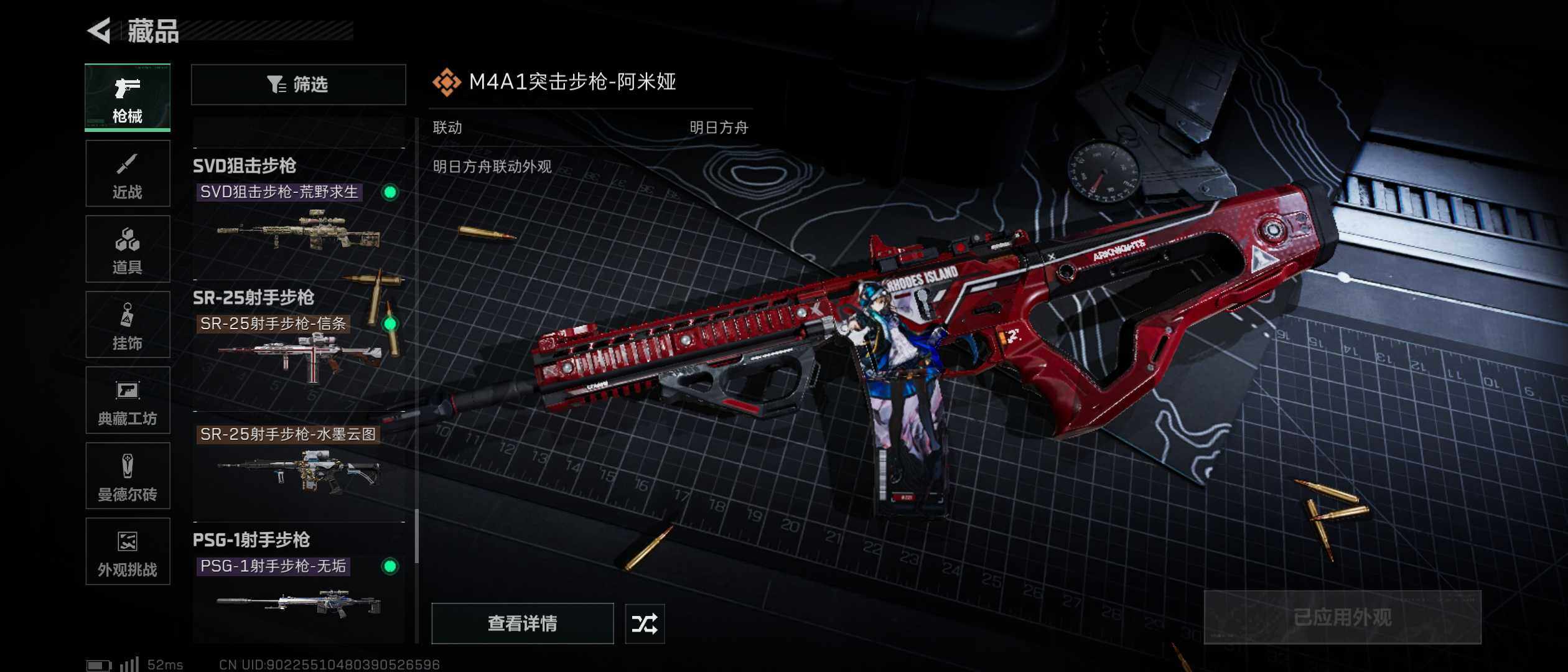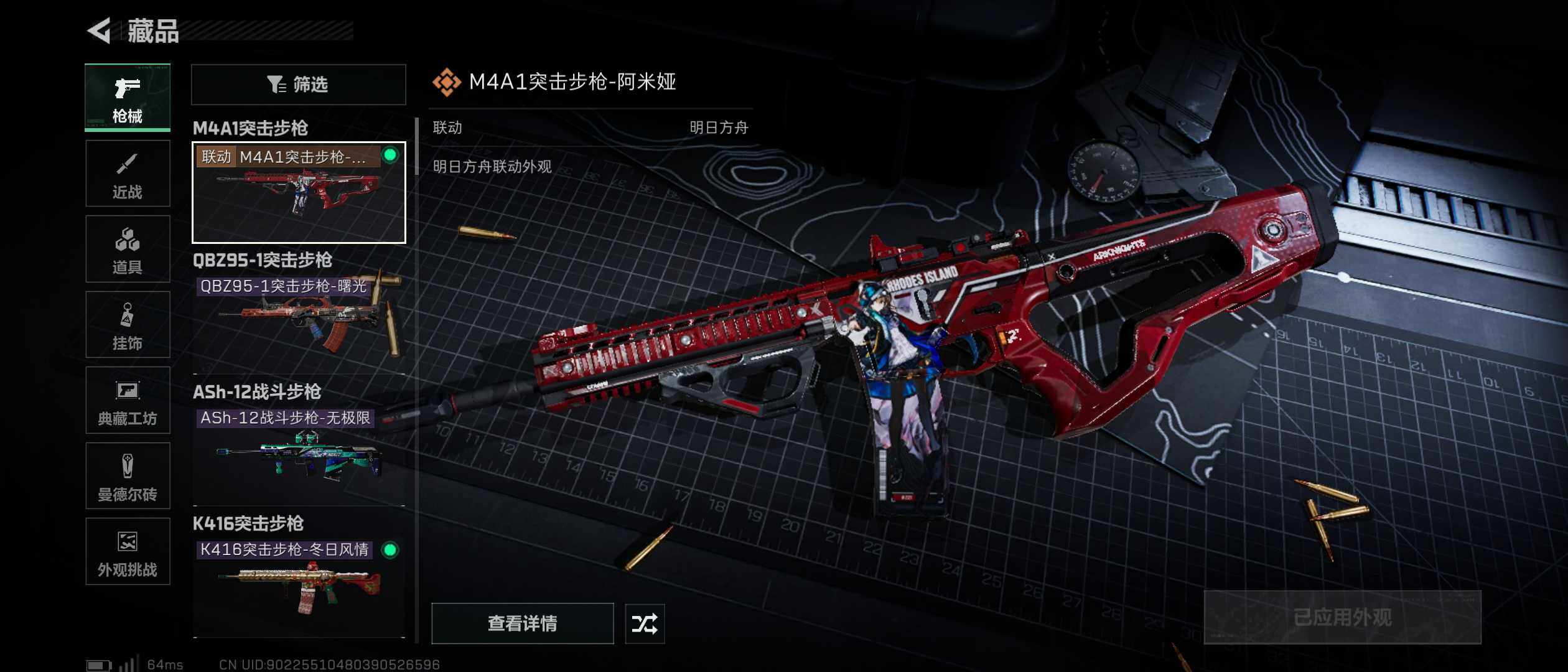 【传说外观】:M4A1突击步枪-阿米娅,SG552突击步枪-运动员,AK-12突击步枪-特斯拉线圈,SCAR-H战斗步枪-启航,CAR-15突击步枪-阿米娅,腾龙突击步枪-捞点薯条,K437