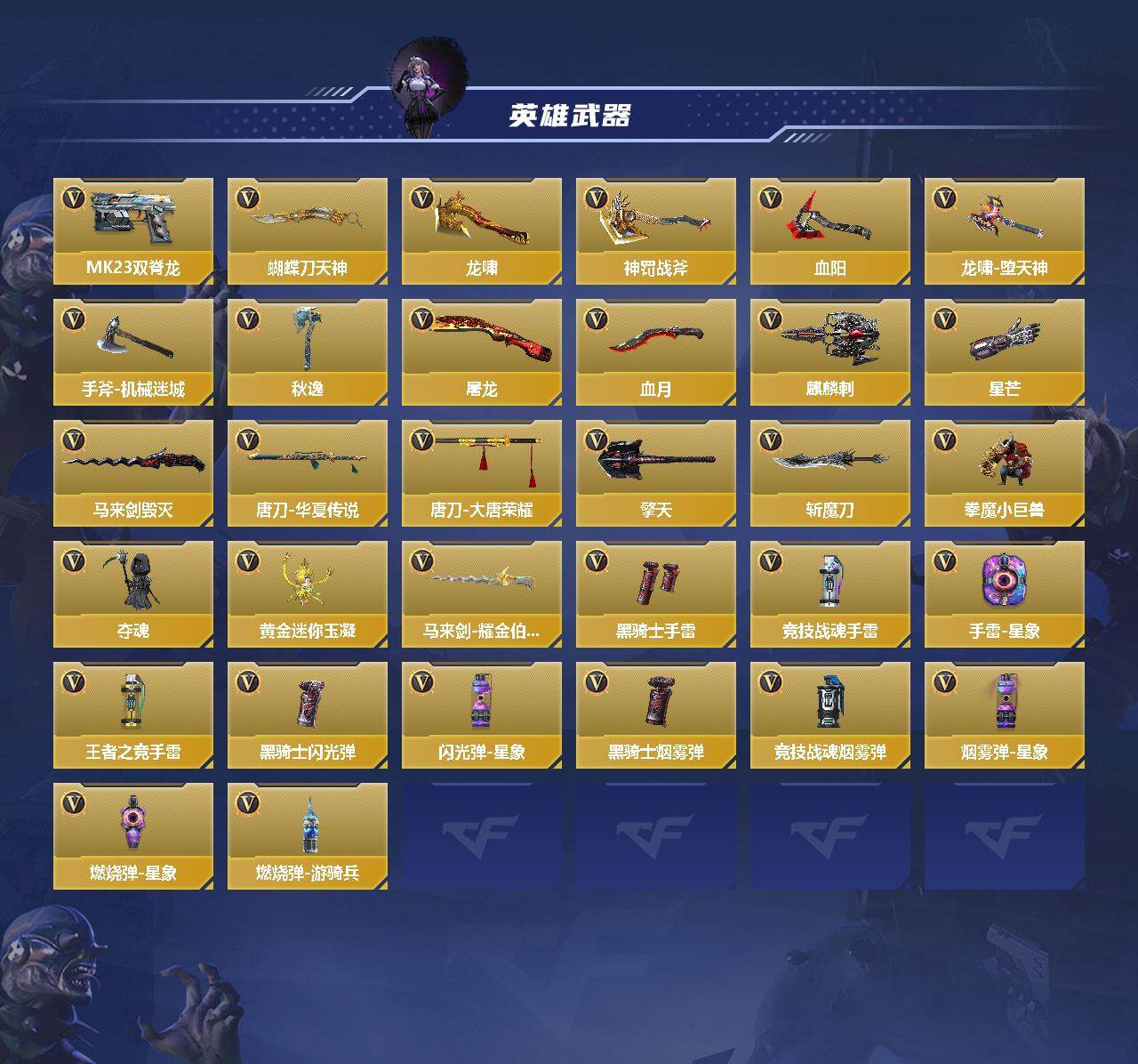M200权*AK奉先+无双*王影+女团*王刺*COP雷霆*COP堕天神*AK小人枪*M200幻神*王业*虹儿*晴雅*-154英雄武器数