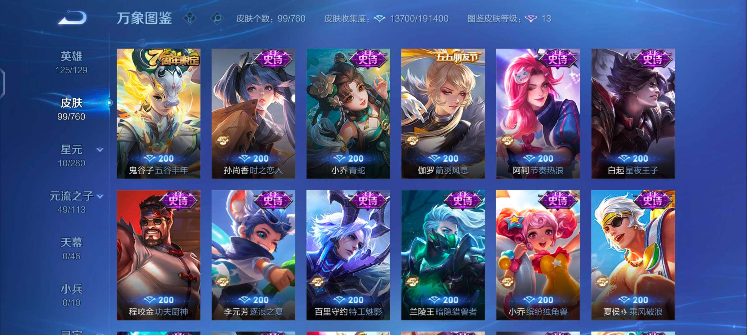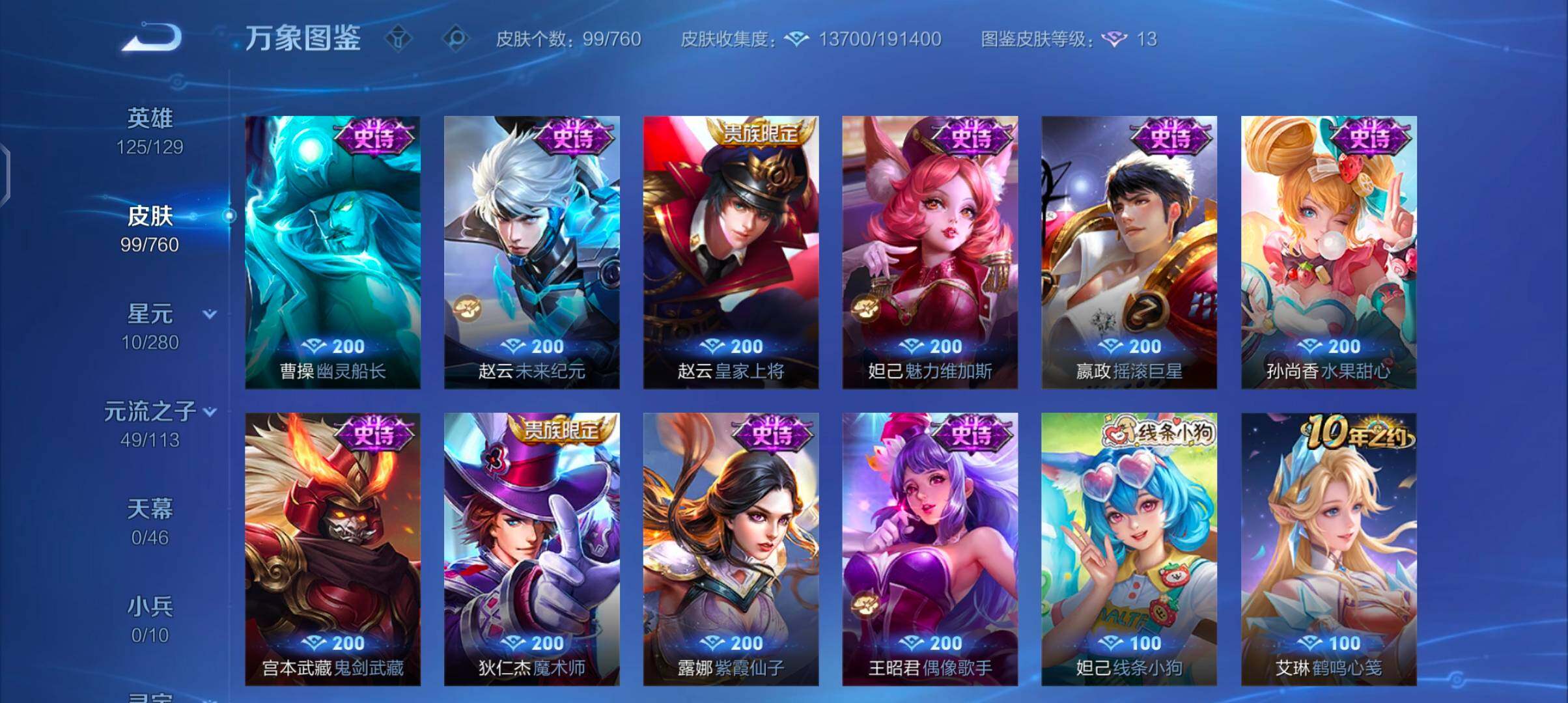 【限定皮肤】:狄仁杰阴阳师,赵云皇家上将,高渐离玩趣