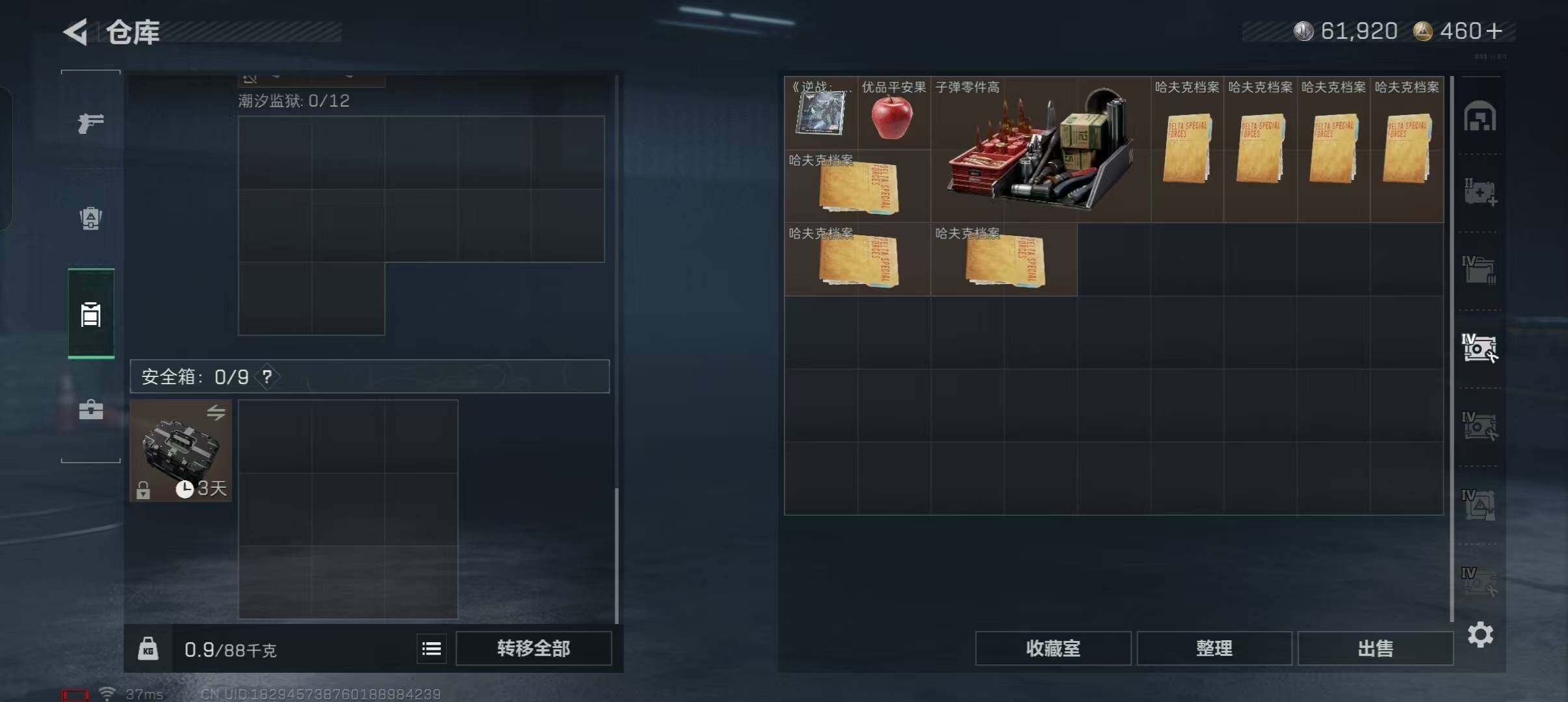总资产(M):173M/哈夫币(K):61K/传说枪皮数:7/全面战场等级:12_段位:列兵/烽火地带等级:60_段位:三角洲巅峰/