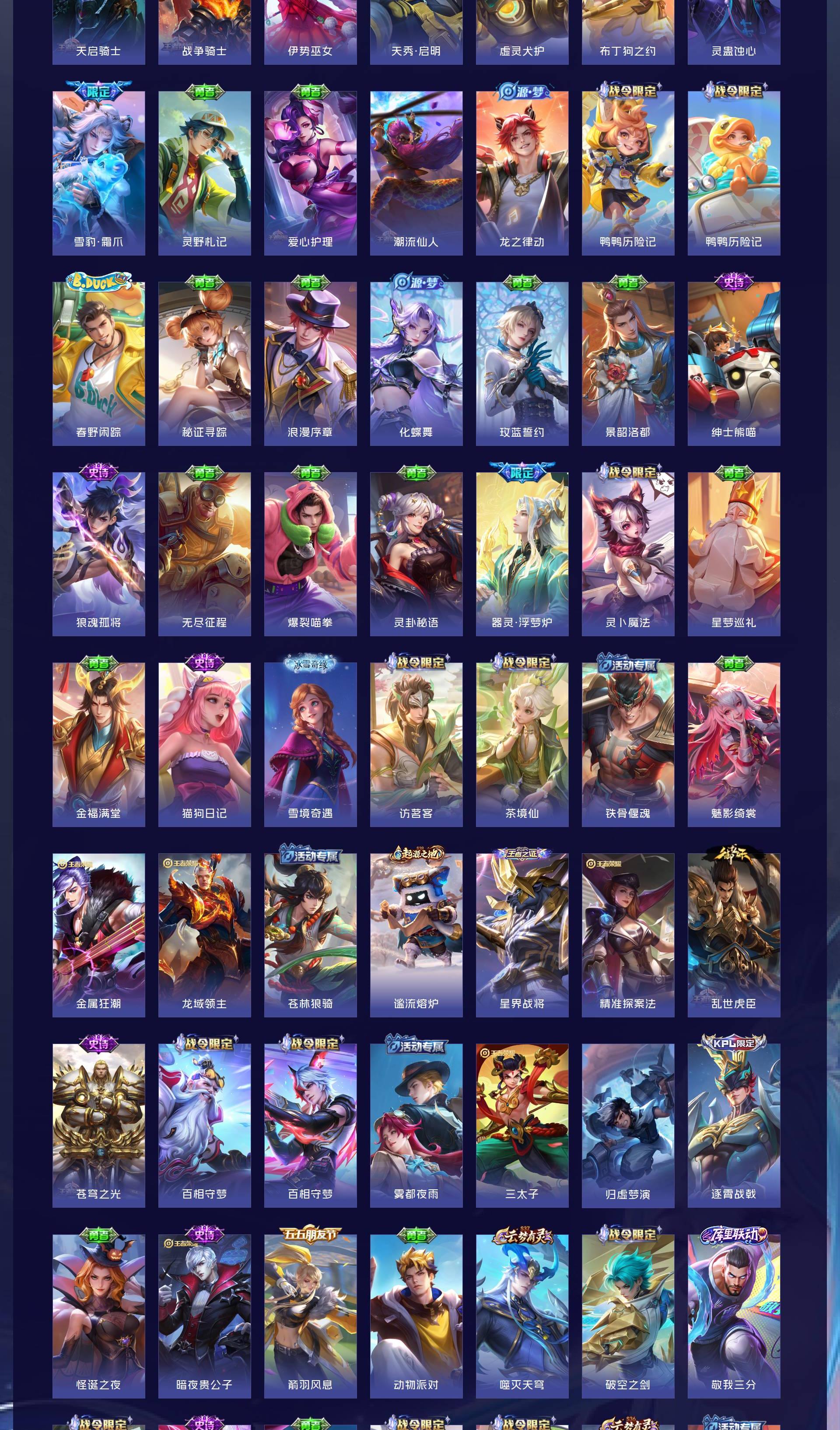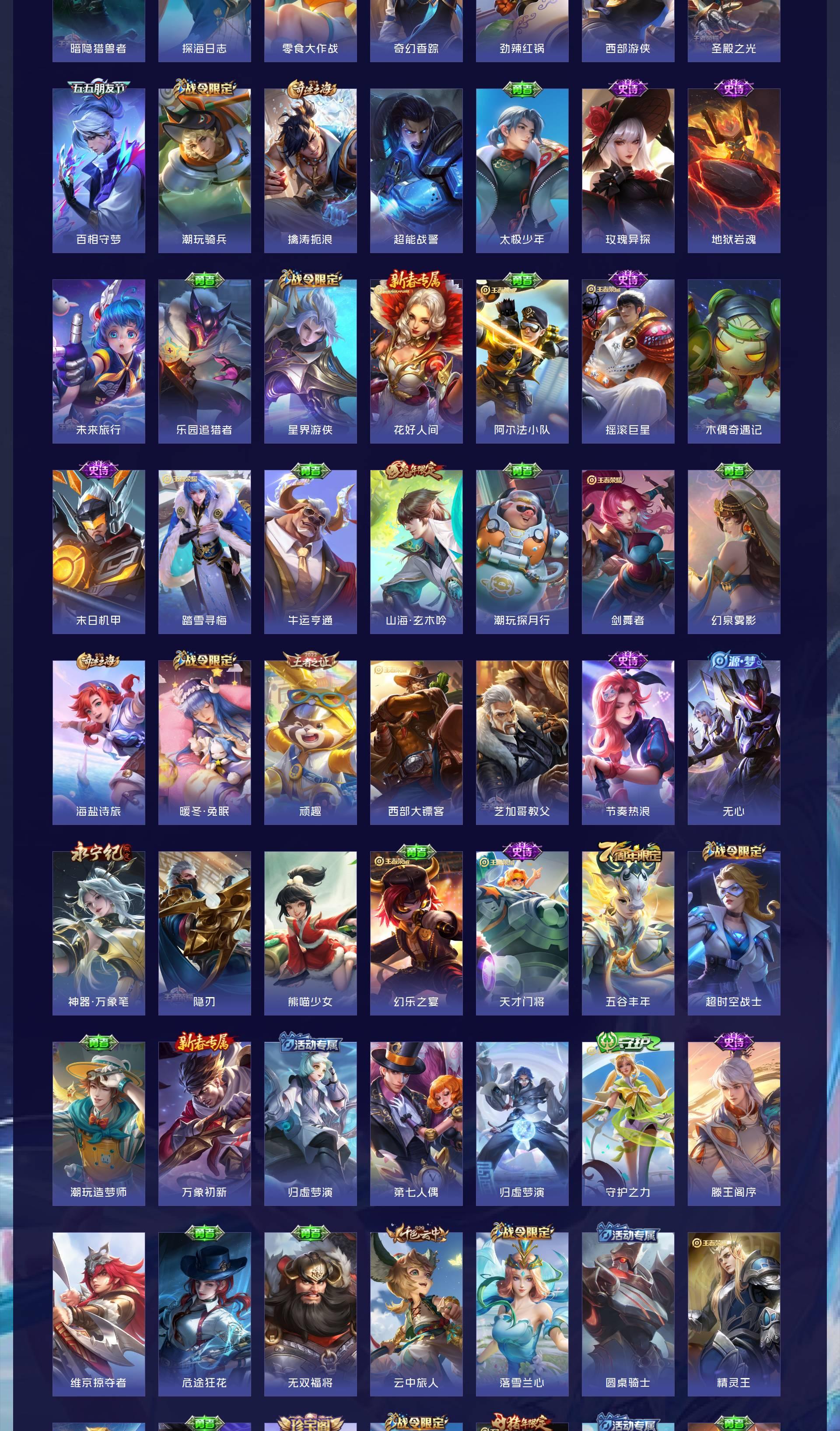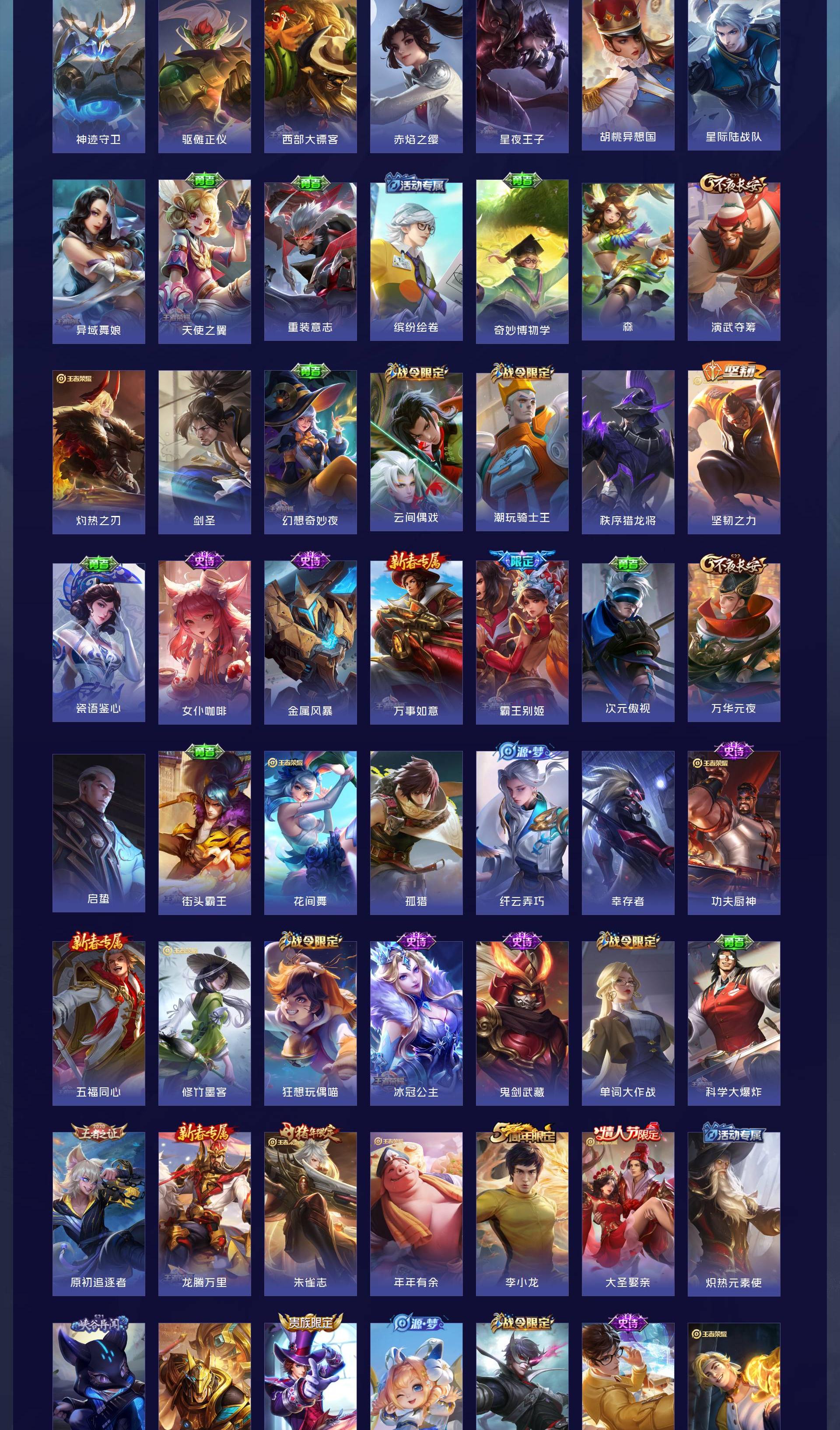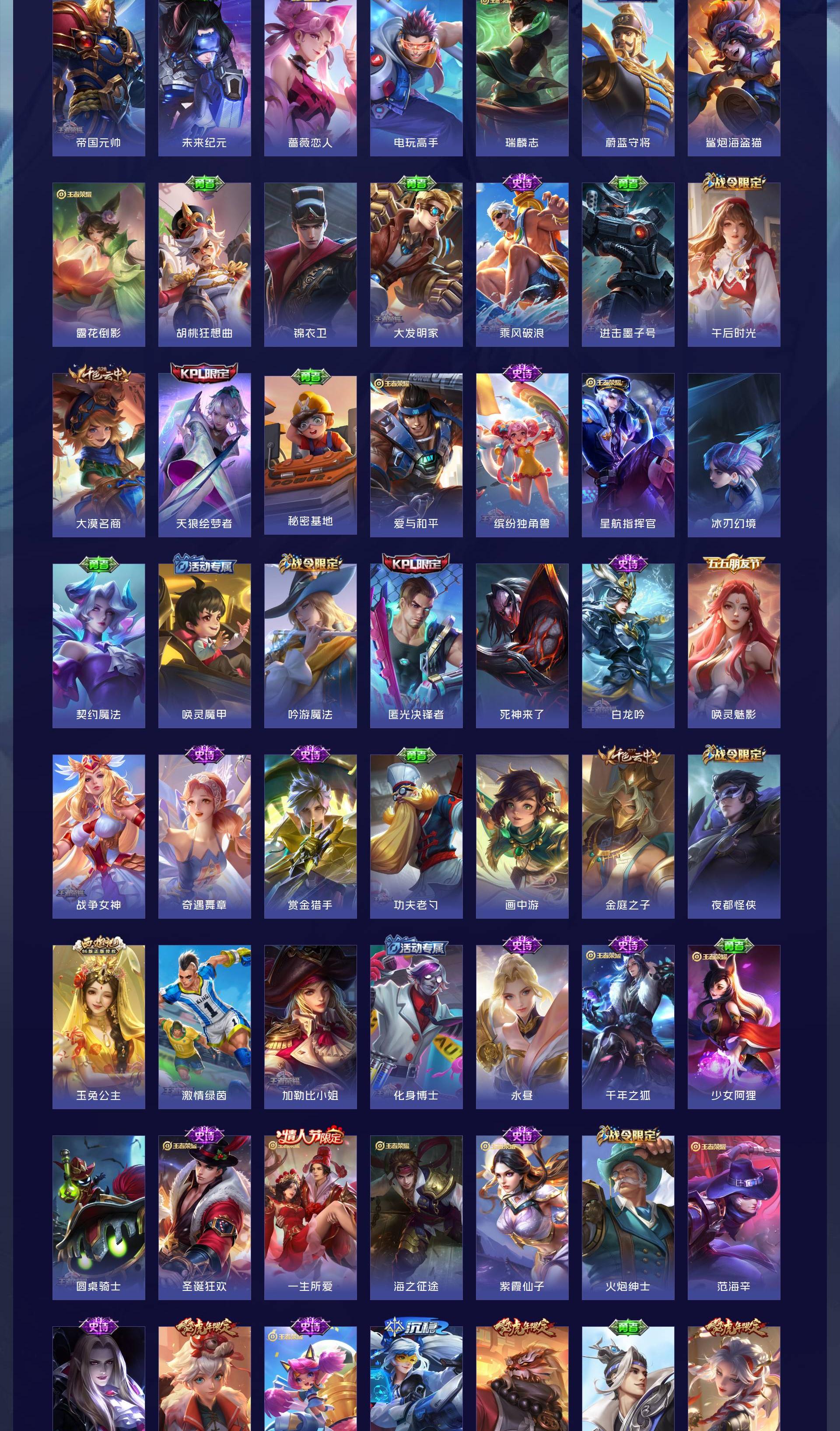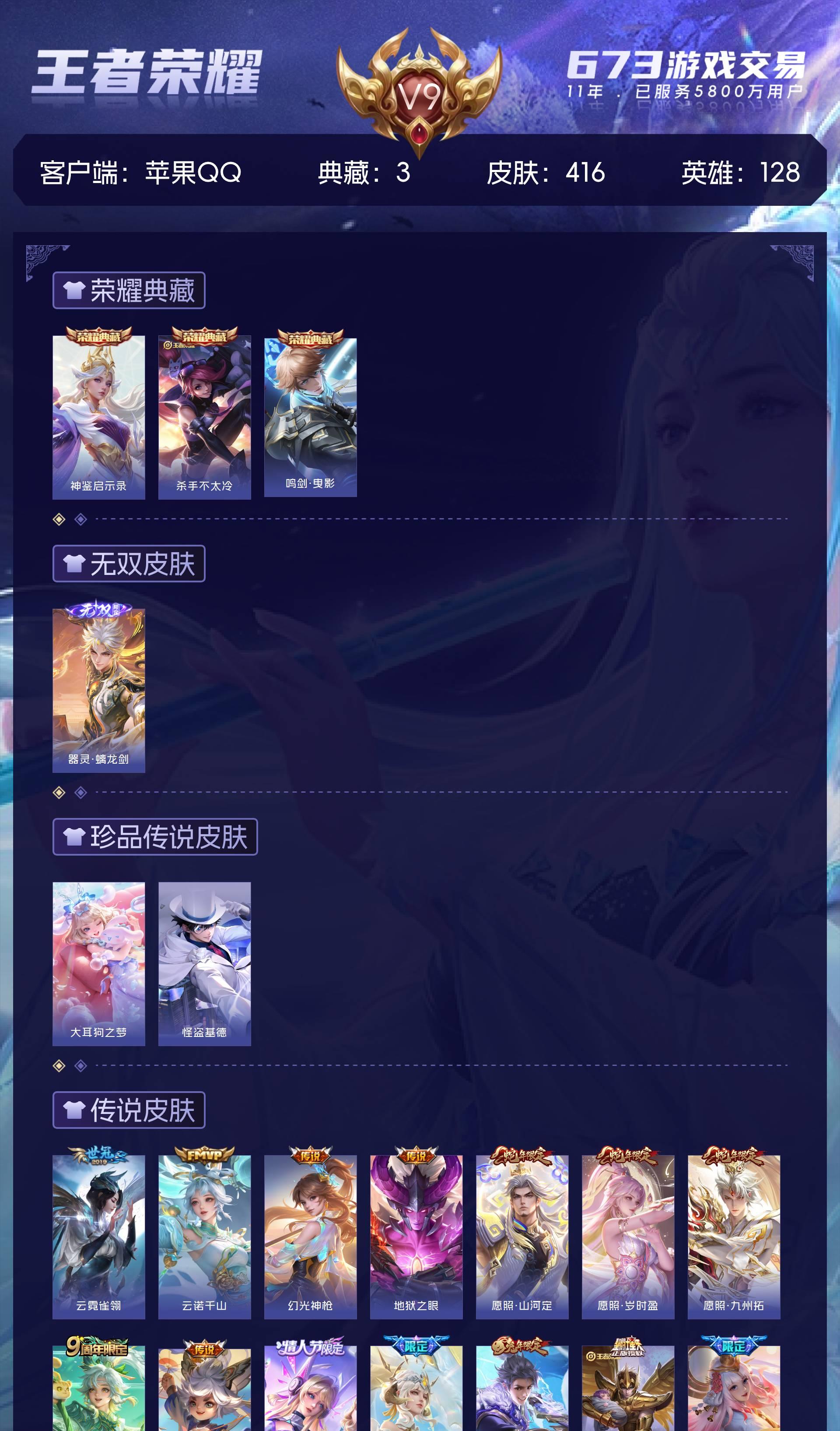 V9 皮肤416 英雄128 最强王者 荣耀典藏3 无双皮肤1 珍品传说2 传说30 其他皮肤385