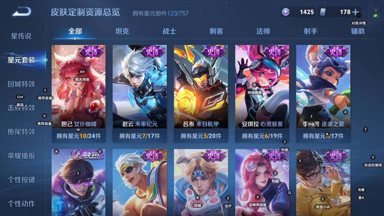 打野25段,1星传说5按键, 安卓Q-V6-128英雄-203皮肤-8传说-50史诗