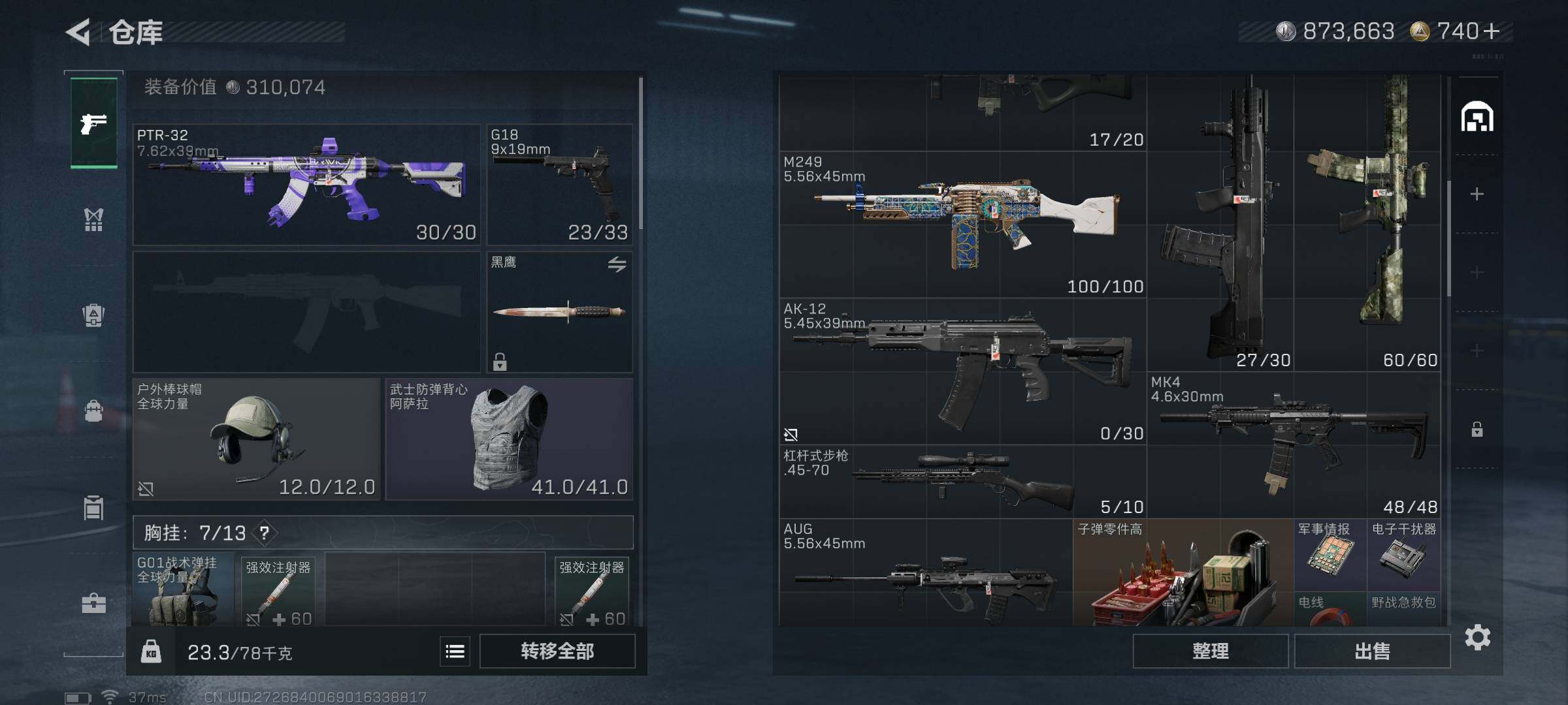 【SJZ3825】总资产(M):15M/哈夫币(K):873K/哈夫币(K):873K/传说枪皮数:13/全面战场等级:1_段位:无段位/烽火地带等级:60_段位:铂金/红狼-电锯惊魂/近战-黑鹰/M16A4突击步枪-狩猎时刻/SCAR-H战斗步枪-启航/G3战斗步枪-狩猎时刻/CAR-15突击步枪-阿米娅/腾龙突击步枪-捞点薯条/KC17突击步枪-电锯惊魂/Vector冲锋枪-狩猎时刻/勇士冲锋枪-能天使-午夜邮差/M250通用机枪-骑士之心/M14射手步枪-电锯惊魂/AWM狙击步枪-捞点薯条